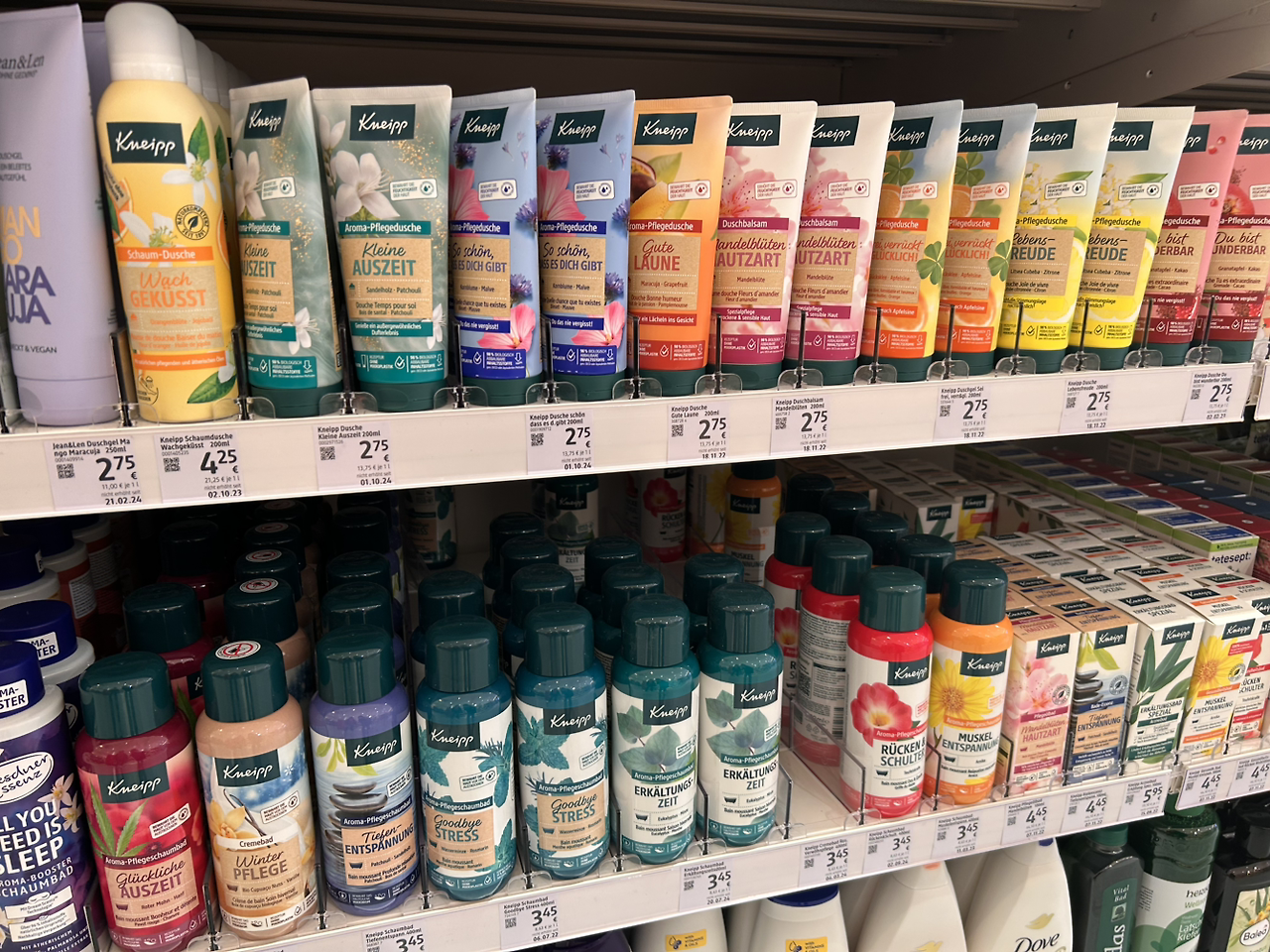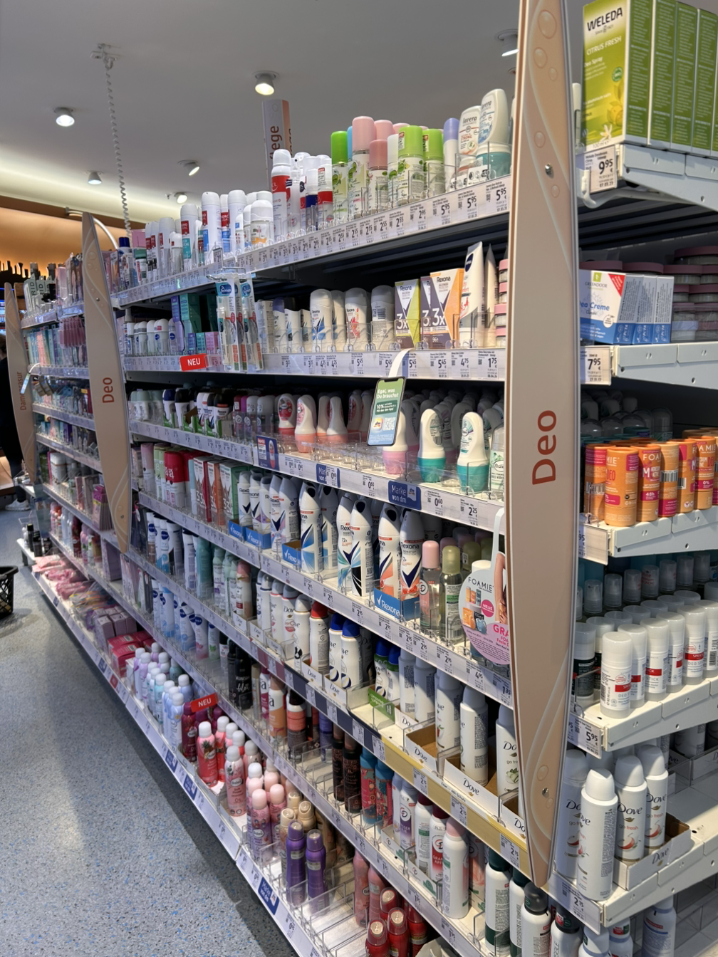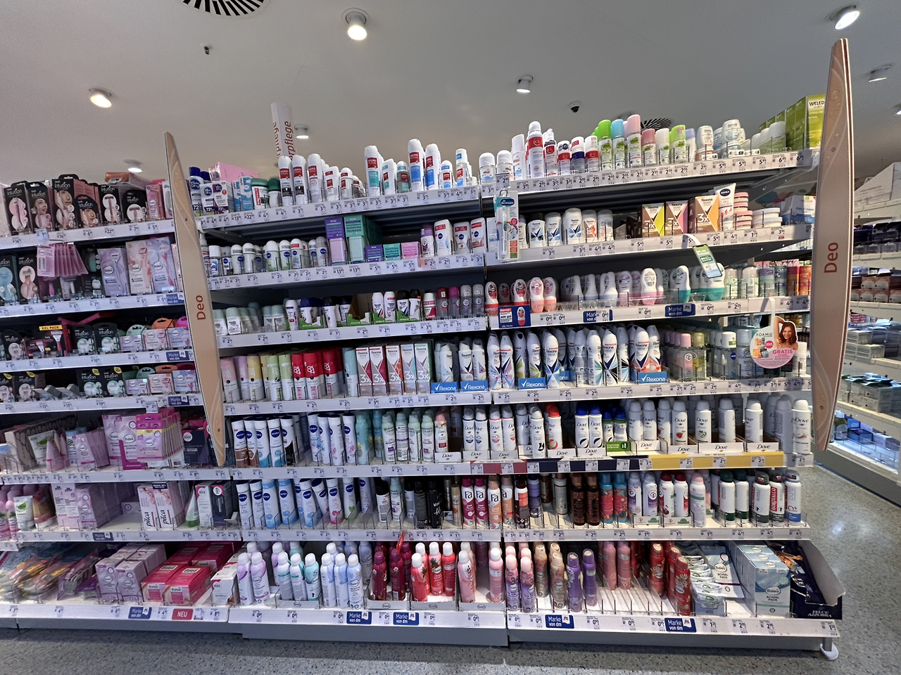 올리브영에서는 하절에만 바디 곤도라와 별도 집기로 데오 카테고리 제품을 진열하는데, 유럽은 확실히 겨울인데도 데오 조닝이 크게 되어 있었어요. (시즌성으로 POG 교체를 하지 않아 보임)