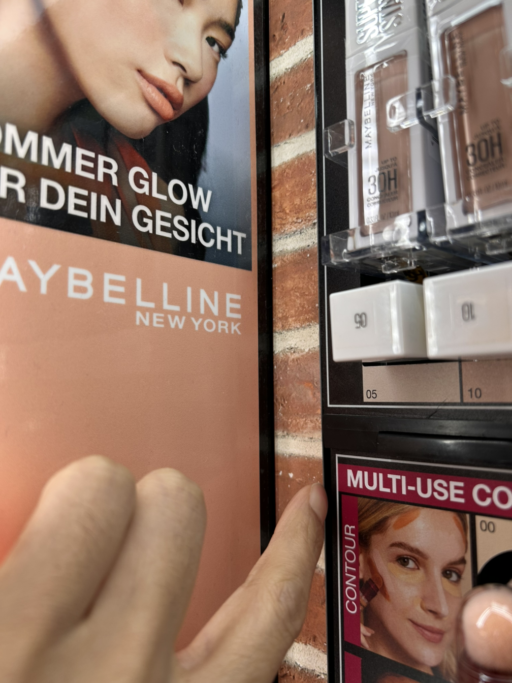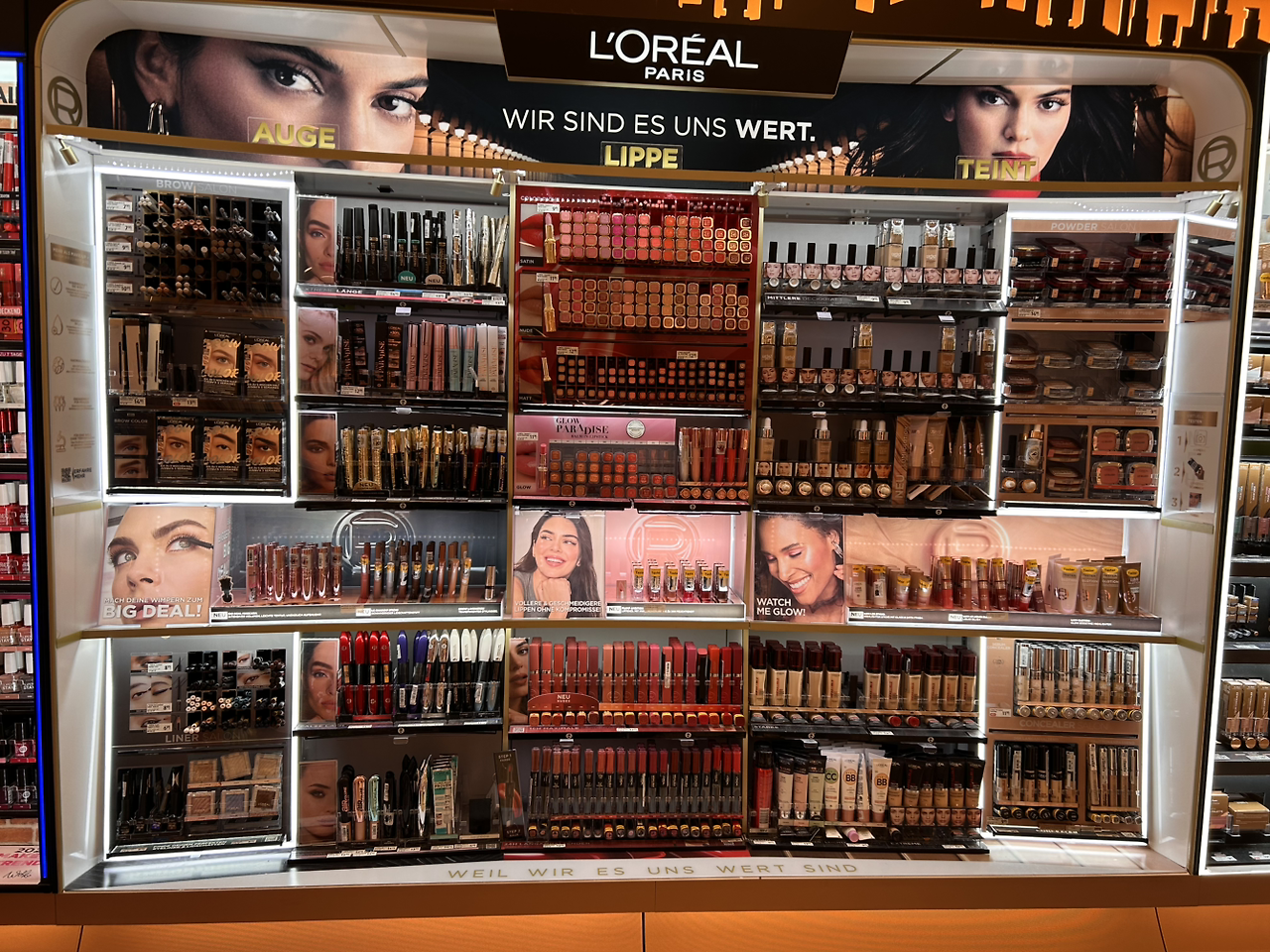 dm은 벽장에 색조가 길게 쭈욱 브랜드장으로 진열이 되어 있는데, 특히 로레알쪽 집기의 완성도가 꽤 높은 편이에요. (한국도 마찬가지였고요)