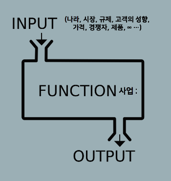 또, 함수(사업): 은 회사마다, 외부 환경에 따라 그 모습이 달라집니다. 어떤 사업에서는 굉장히 중요한 요소가 다른 사업에서는 조금도 중요치 않을 수도 있고, 어제는 고민하지 않아도 됐던 것이 갑자기 회사의 명운을 가르기도 합니다. (이런 경우는 규제가 대표적이겠네요.)