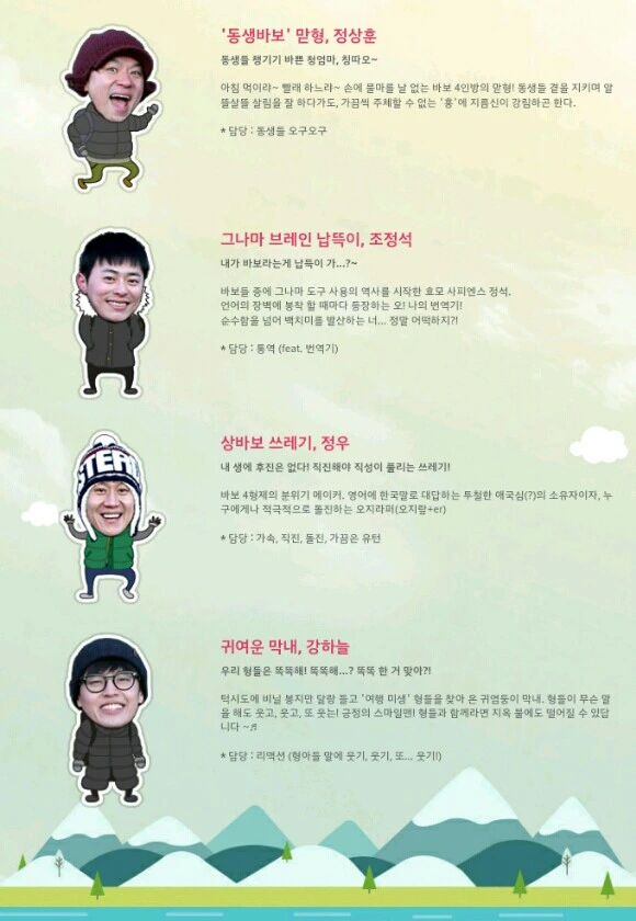 이번 여행의 조합은 조정석, 정상훈, 정우, 강하늘이다.