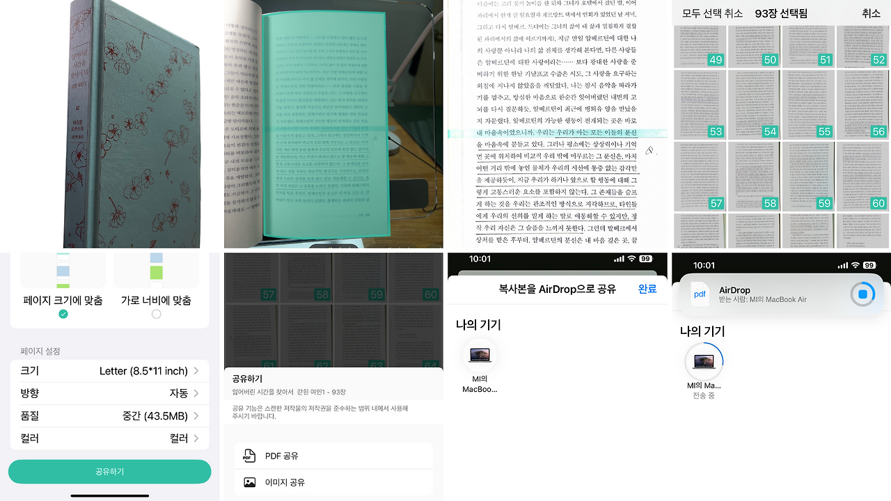 도서관에서 빌려온 책들은 완독 하면 보통 이런 과정으로 디지털화시키는데, 어떤 책들은 전체 페이지를 고스란히 PDF로 전환시키기도 한다. 저작권법에 따르면 개인 용도로 저장하는 경우에는 문제가 없다고 하니, 경제적인 사정이 어려운 사람이거나 대출 기간 동안 책을 소화시킬 자신이 없는 사람이라면 귀찮더라도 전체 책을 PDF로 스캔하는 것도 좋겠다.