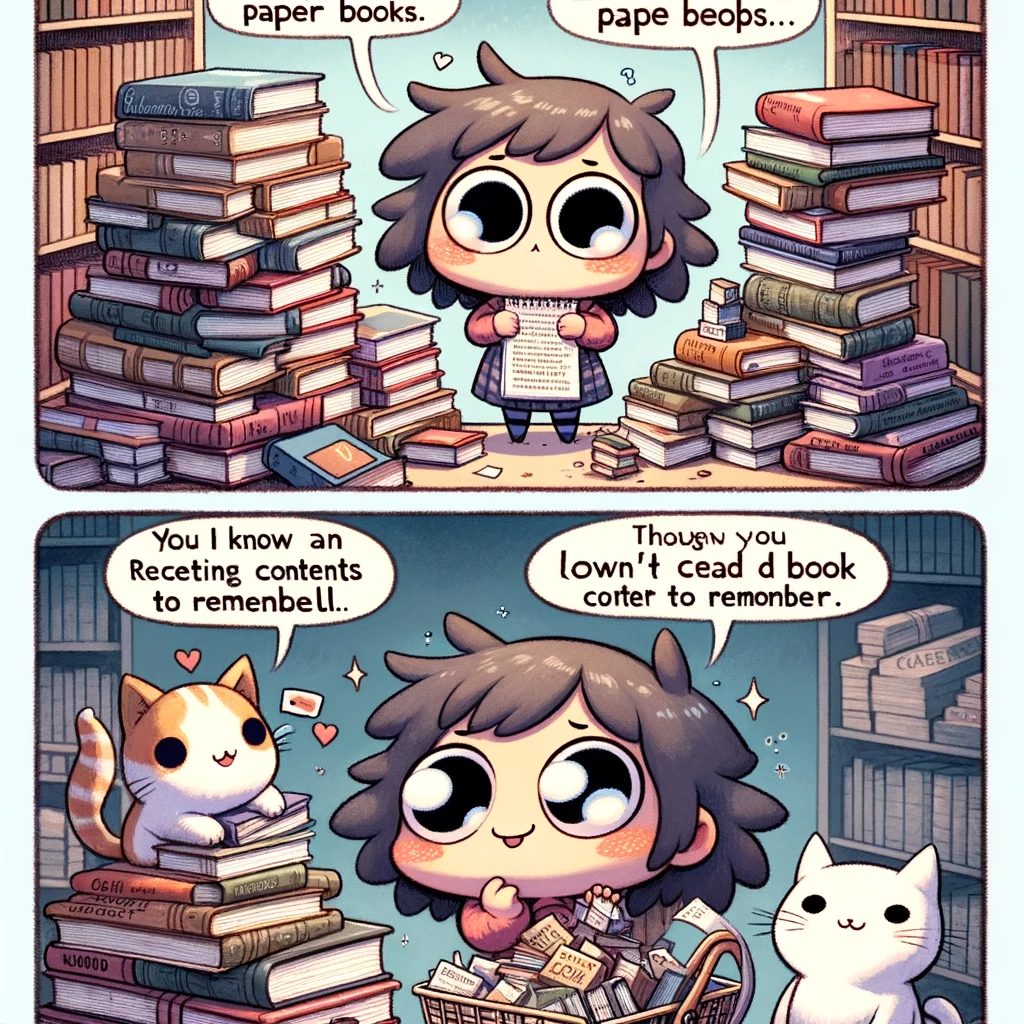 현재 나는 종이책과 전자책의 두 가지 방식으로 책을 읽고 있다. 먼저 아날로그 방식인 종이책의 경험을 어떻게 디지털로 전환하는지 알아보자. 그러기에 앞서 내가 한 달에 종이책을 얼마나 읽는지 조사부터 해야 할 것 같은데…