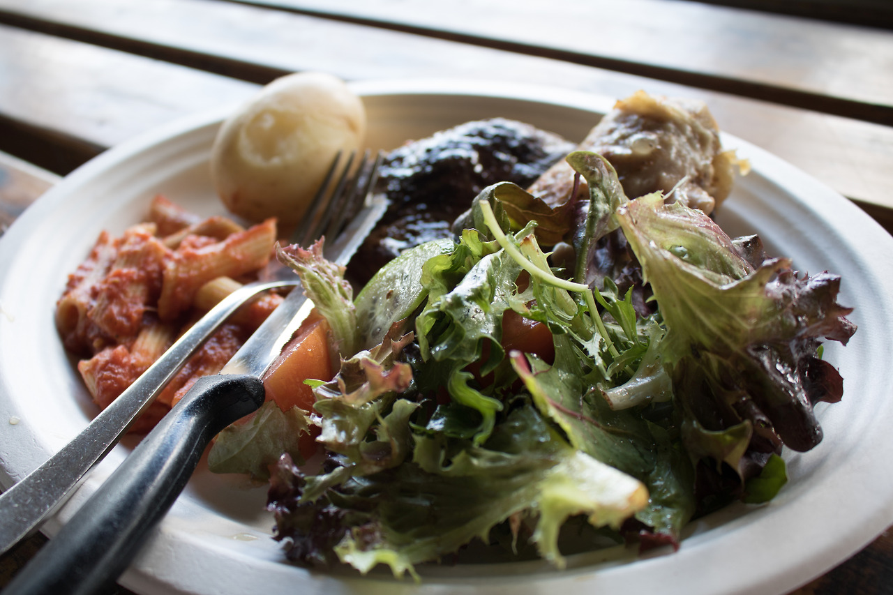 자리를 옮겨 아웃백 식사를 받았다. 접시에 몇 가지 음식을 담아줬다. 시드니에서 첫 번째로 맞는 식사다. 스테이크가 약간 탔지만, 본 거장에서 맛보게 되는 혀의 감각은 나쁘지 않았다. 다만 파리가 너무 많았다. 내 음식을 탐하는 파리가 미웠다.