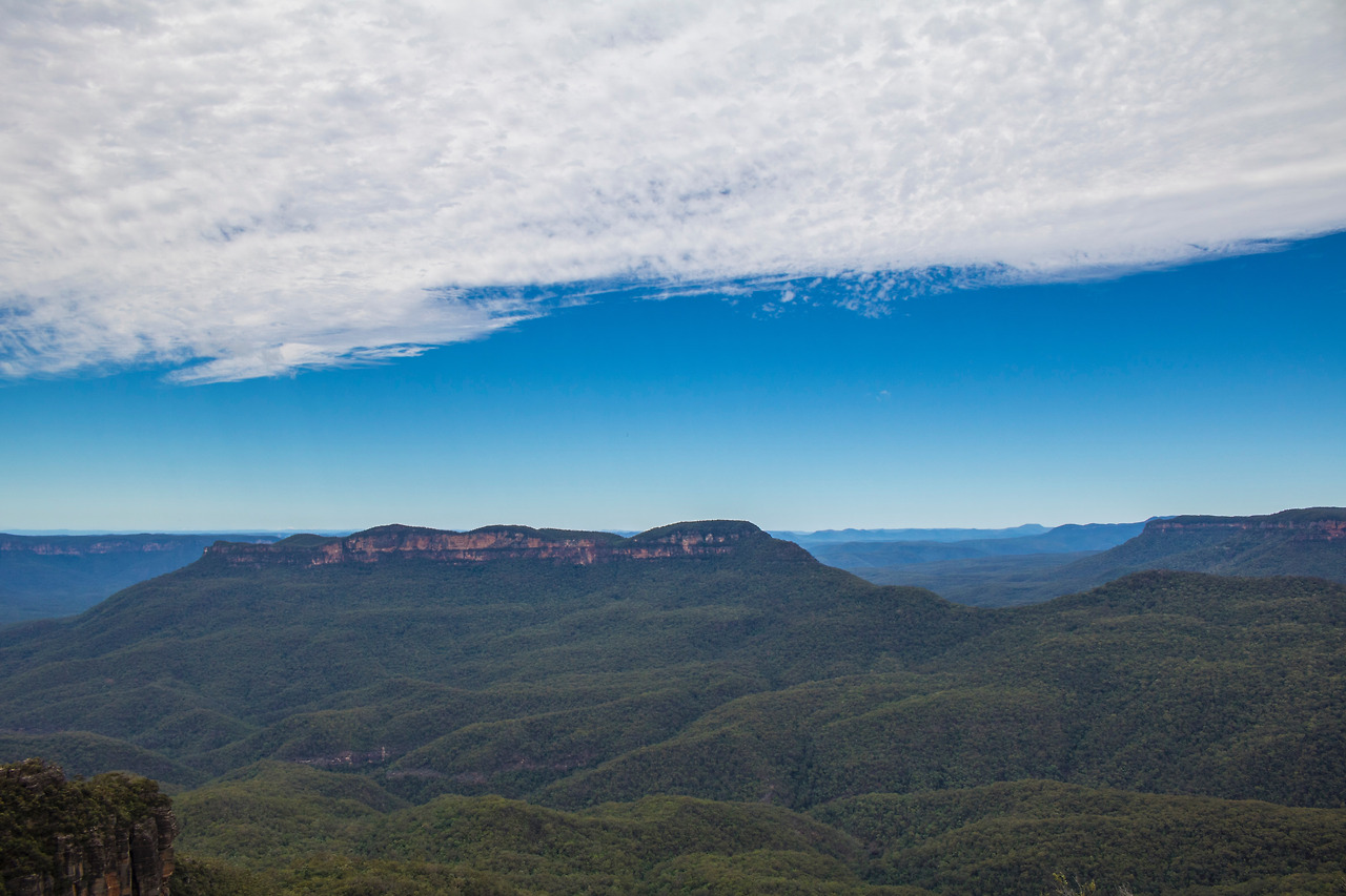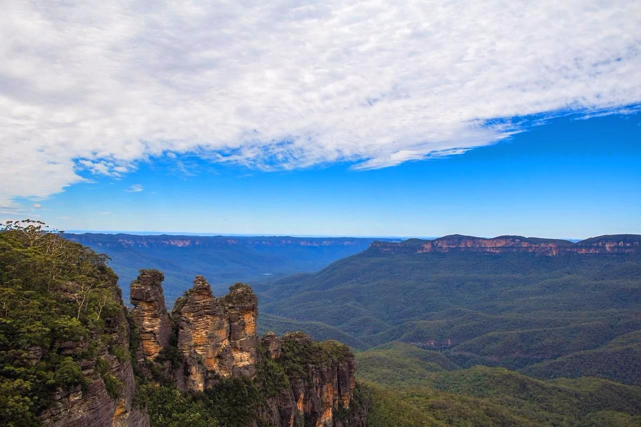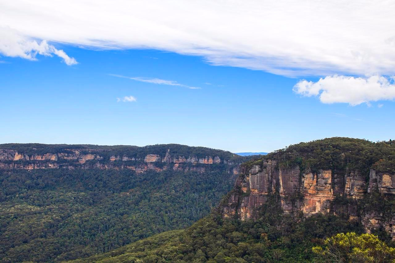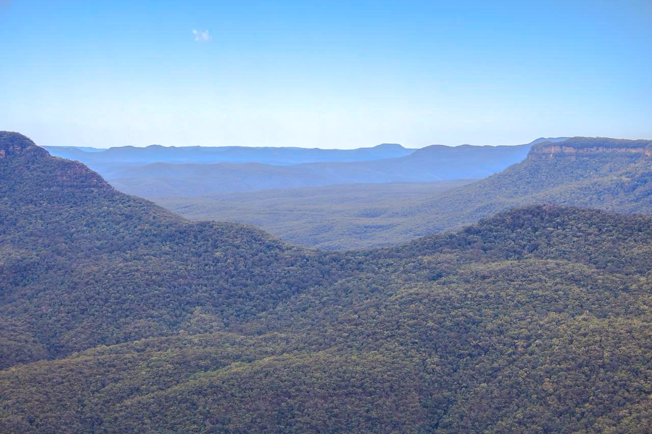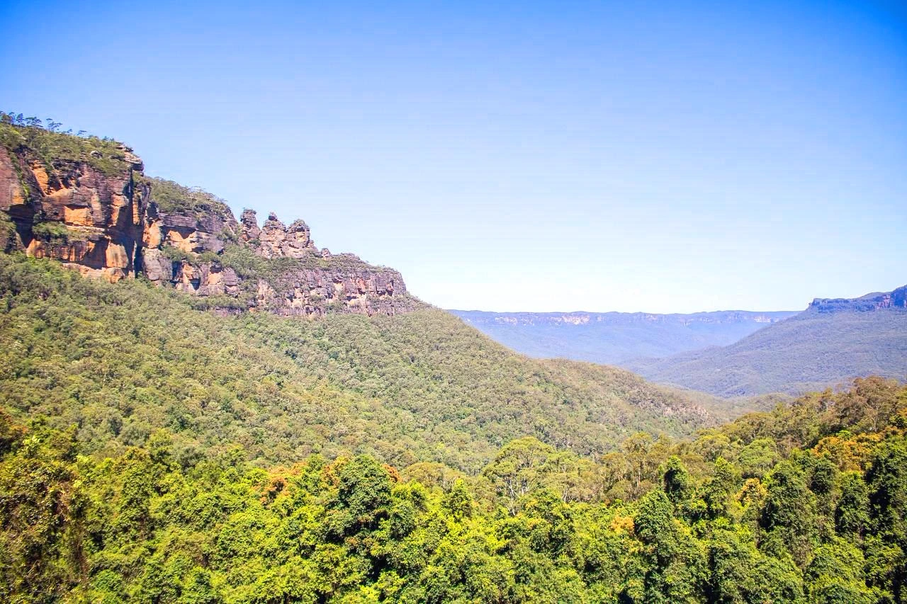 블루 마운틴 중턱에서 멀리 세자매 봉을 바라본다.