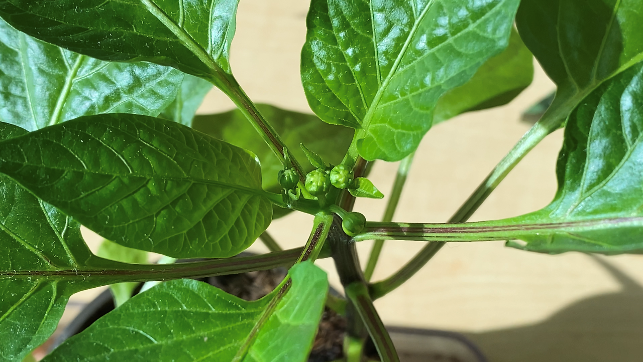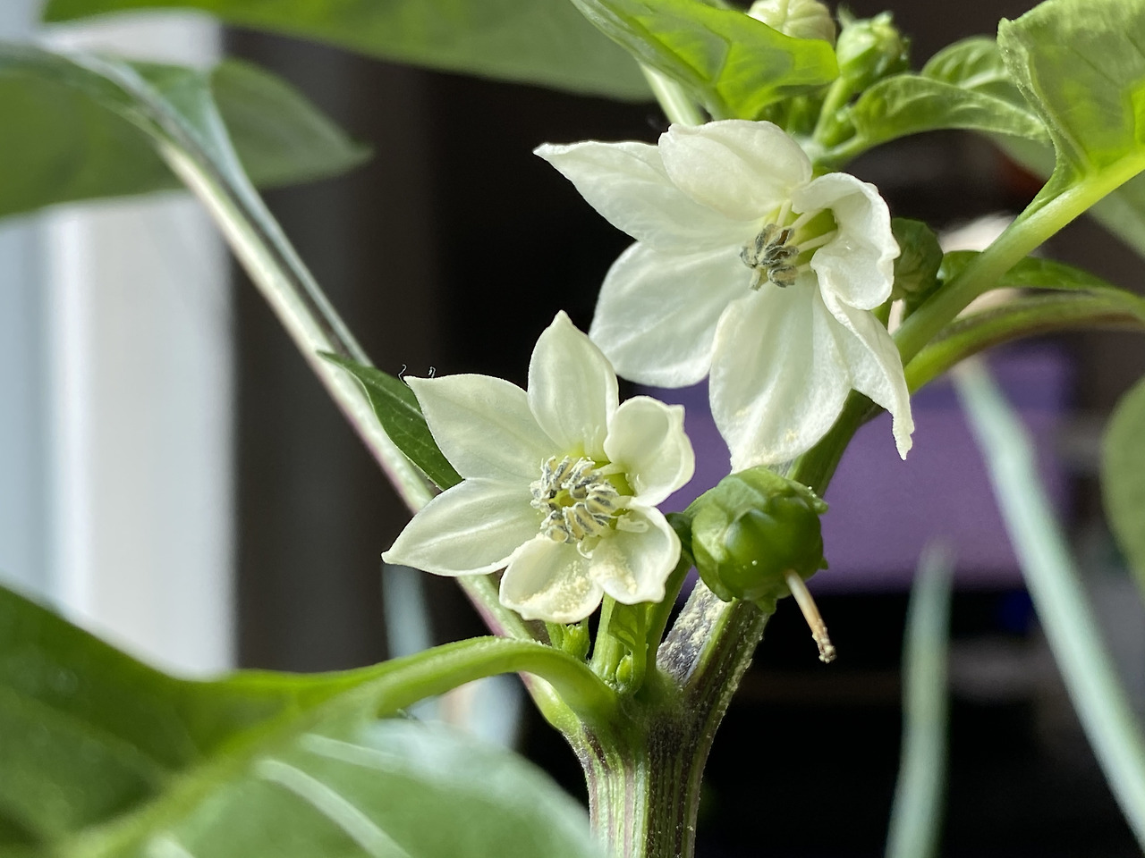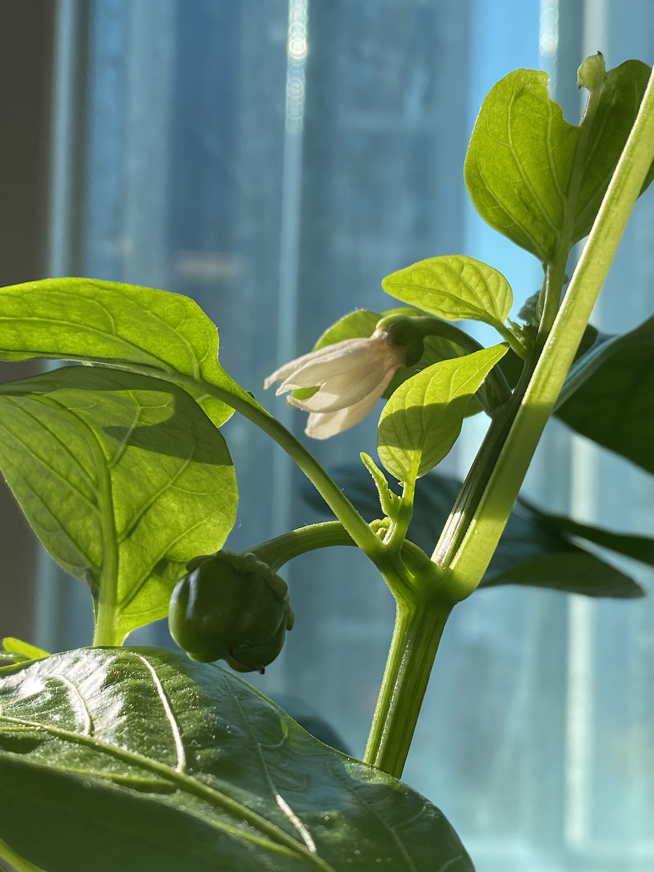 분갈이 해준 뒤 파프리카는 더욱 쑥쑥 자라났습니다. 이제 파프리카 이곳저곳에서 꽃이 피어나고, 꽃이 진 자리에는 아주 작은 파프리카가 열리기 시작합니다.
