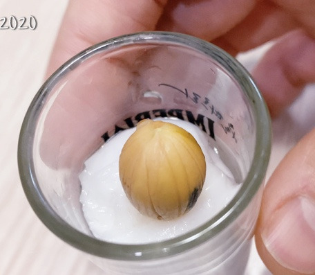 1. 도토리의 겉껍질을 벗겨낸다. 이때, 벌레 먹지 않은 도토리를 고르고, 껍질을 벗길 때 속살(씨눈)이 상하지 않도록 조심한다. 겉껍질을 벗기지 않아도 싹이 트는데, 껍질을 벗겨주면 발아 과정을 조금 더 빠르게 할 수 있다.