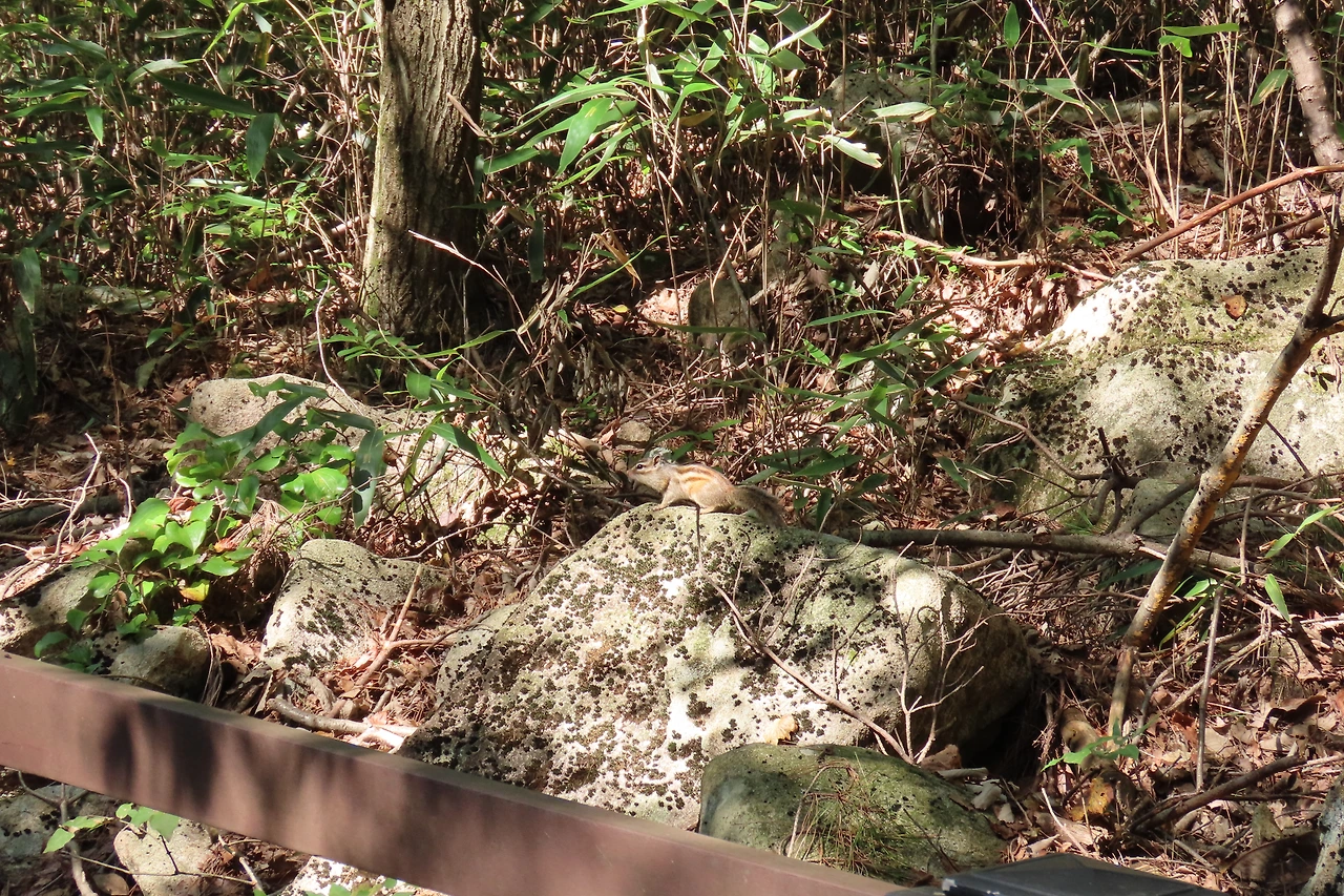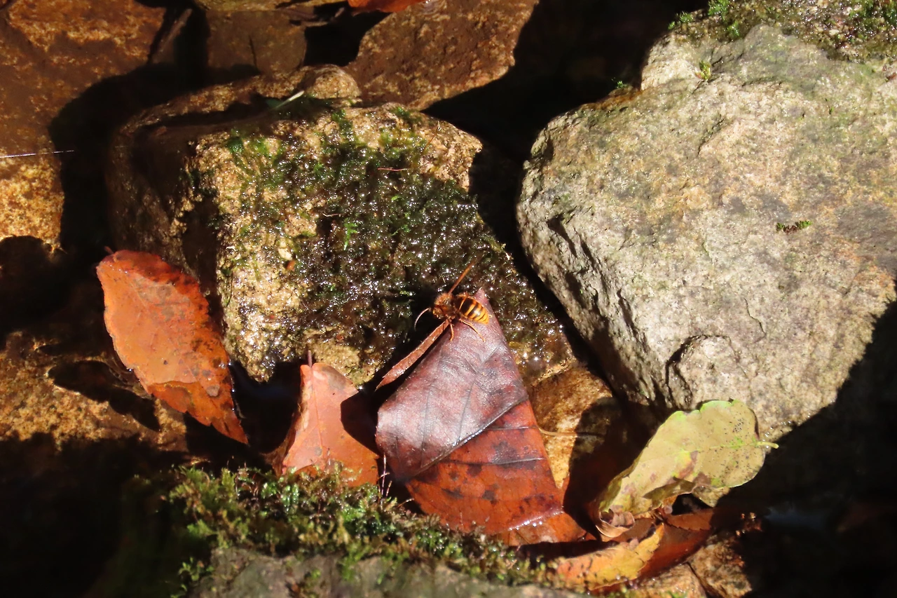 겨울잠에 들어가기 전 마지막 먹이 활동을 하느라 바쁜 다람쥐는 언제나 만나면 반가운 산길 친구입니다. 충남 보호종이자 이곳 일대 깃대종인 이끼도롱뇽을 만나 볼 수 있을까 하고 계곡 주변 바위를 살펴보다가 바로 어디선가 날아와 목을 축이고 가는 장수말벌을 만났습니다. 곳곳에 거미줄을 드리우고 먹잇감을 노리는 무당거미 역시 이곳 주인공 중 하나입니다.