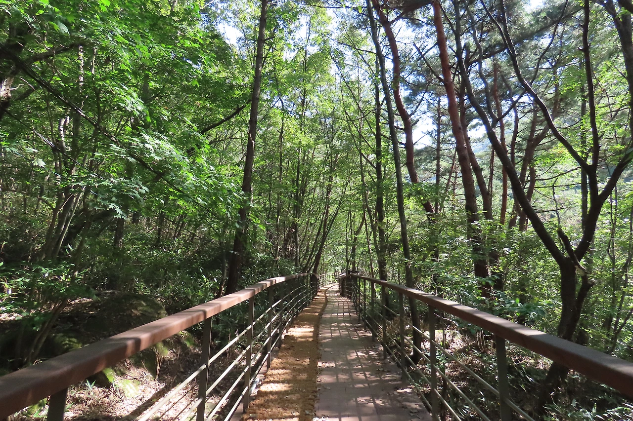 무장애 탐방로 덕분에 마천대 정상에 올라가는 계단길 구간까지 쉬지 않고 한번에 갈 수 있지만, 이들 3대 비경을 만나는 중간 쉼터에 머물며 쉬엄쉬엄 여유를 갖고 대둔산을 들여다볼 수 있습니다. 개인적으로 숲길을 걷든 동안 힘차게 흘러내리는 계곡 폭포를 만나는 일은 이번이 처음이라 더 아름답게 느껴집니다. 폭포와 바위에 얽힌 이야기를 읽는 순간 역시 멋진 산행길 휴식 시간 일부입니다.