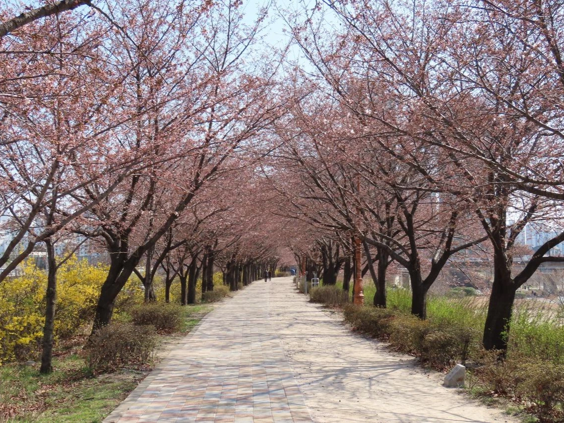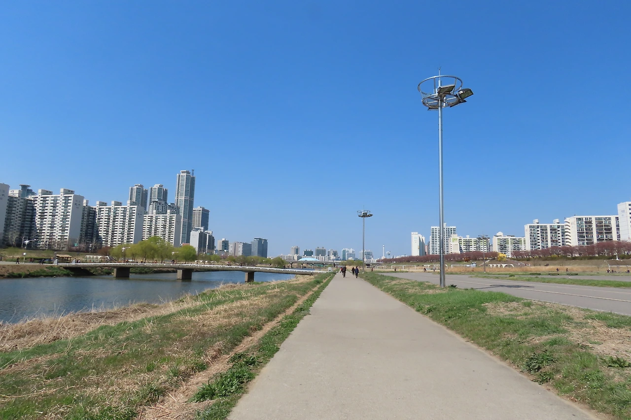 목동교를 건너 구로구에서 다시 영등포구로 되돌아옵니다. 이번에는 안양천 산책로 대신 안양천 둑길을 통해 신도림역 방향으로 걸어갑니다. 몇 해 전부터 서서히 입소문을 타기 시작해 이제는 여의도 벚꽃 축제만큼이나 많은 사람들이 찾아오는 서울 대표 벚꽃길로 자리 잡고 있는 중이지요. 4월 초 끝도 없이 길게 쭉 뻗은 벚나무 터널에 벚꽃이 흐드러지게 피어날 준비를 하고 있습니다. 그 사이를 걸으며 오랜만에 '서울의 봄'을 제대로 느꼈습니다.