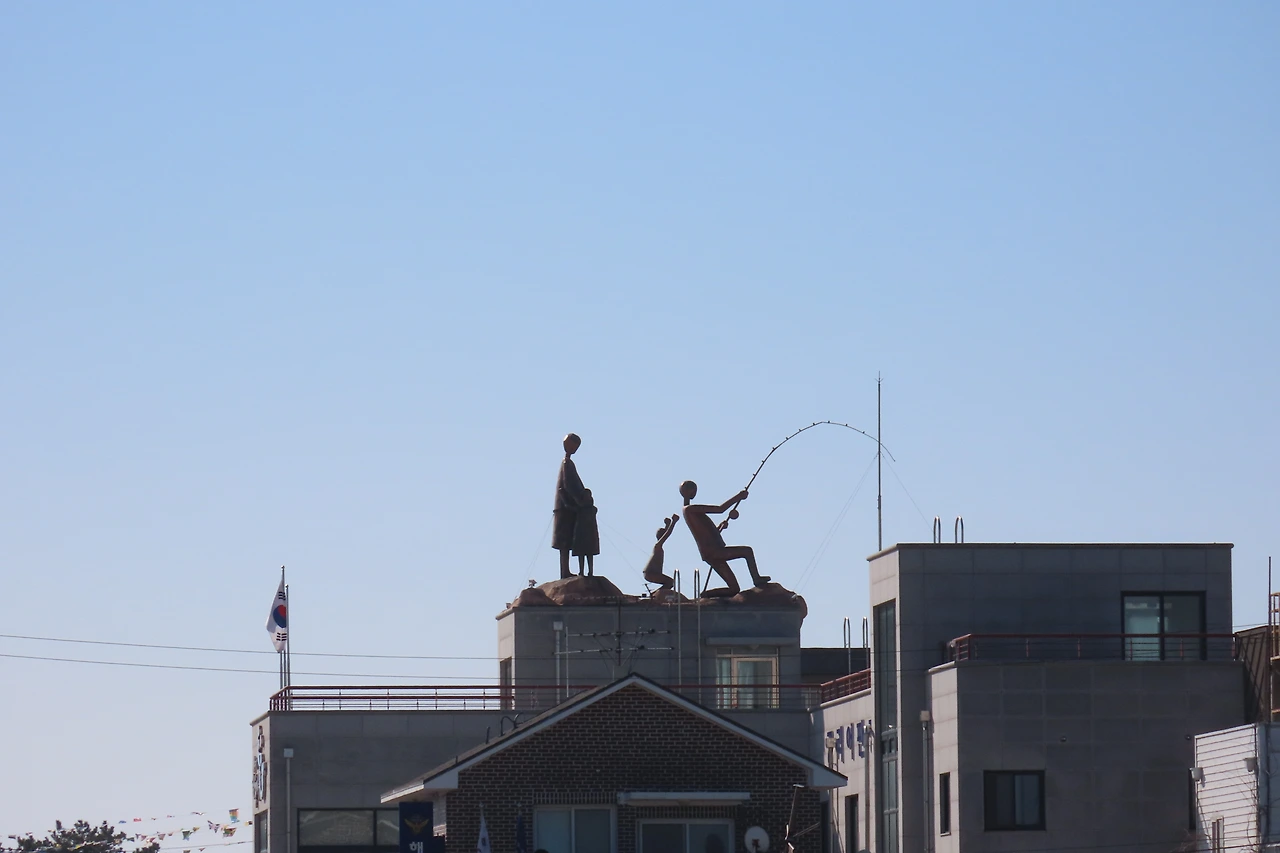 백화점 주변 곳곳에 설치된 이색 조형물은 그 자체로도 도심 한 복판 야외 전시관이고, 작은 포구에서 만난 낚시하는 가족 조형물은 이곳이 평온하고 고요한 바닷가 마을이라고 알려주는 작품이었습니다. 그리고 황새공원에서 볼 수 있는 황새 가로등은 주 테마인 황새를 잘 드러낸 좋은 사례였지요.