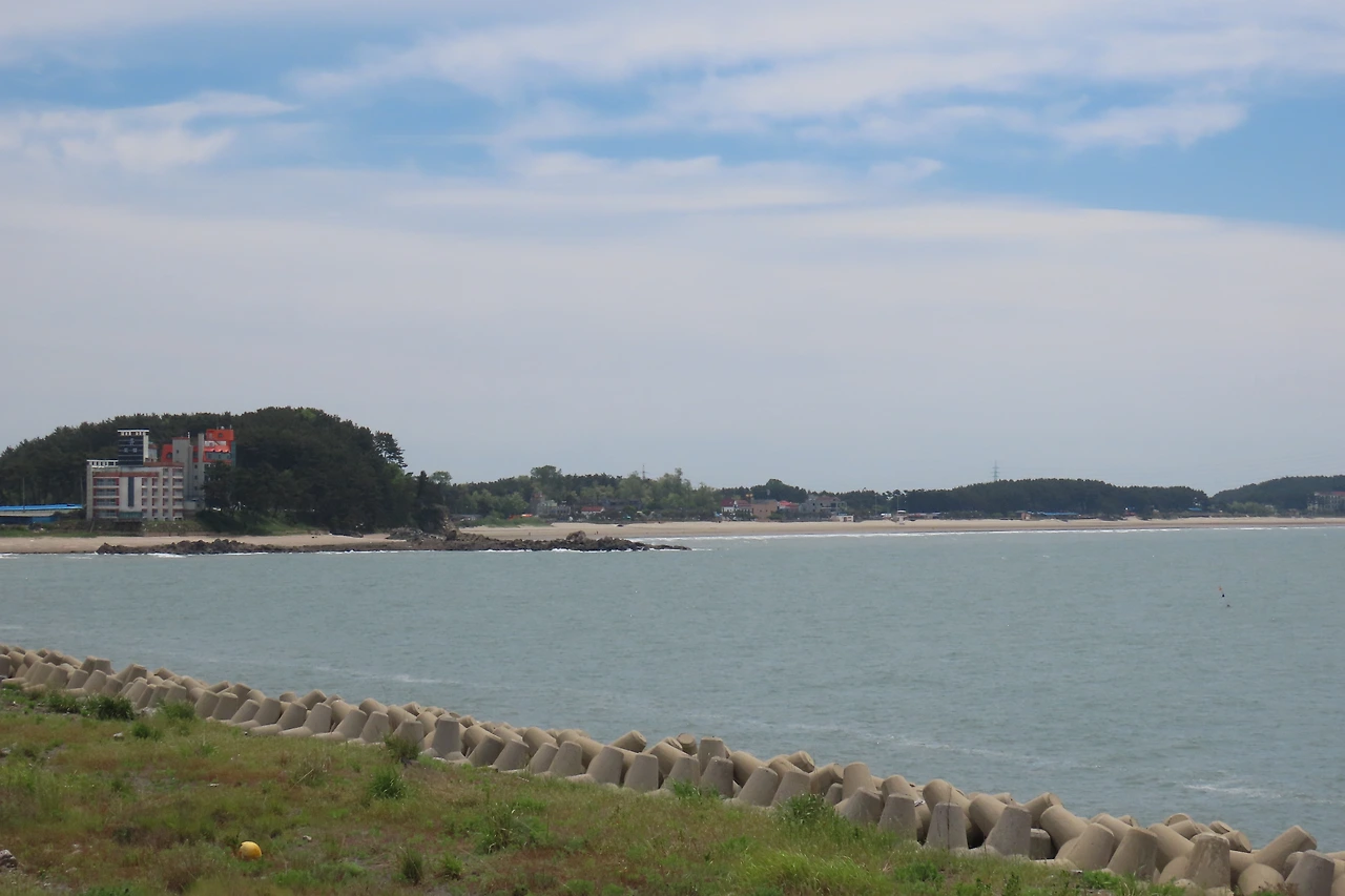 지도상에서 이름으로만 만났던 그곳이 점점 가까이 모습을 드러냅니다. 잠시 부사방조제 위에서 발걸음을 멈추고 생애 첫 춘장대 풍경을 사진으로 담아봅니다. 늦봄과 초여름 사이에 놓여있는 춘장대 모습이 궁금해 조금 더 가까이 춘장대 품 안으로 들어갑니다.