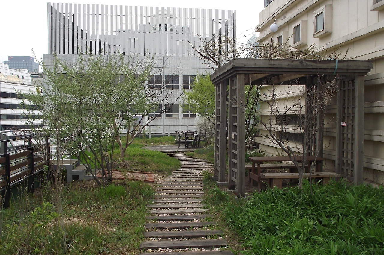 대형마트나 백화점이 입점해 있는 민간 건물 역시 옥상 공간을 적극적으로 활용하고 있습니다. 정원을 멋지게 꾸며 놓은 것은 기본이고 고객들이 조금 더 편하게 이용할 수 있도록 다양한 편의 시설을 제공하고 있지요. 자연관찰 공간, 야외전시관, 어린아이들이 뛰어놀 수 있는 놀이터 공간, 그리고 간단한 다과를 즐길 수 있는 휴식공간에 이르기까지 그 범위도 꽤 넓어지고 있습니다.