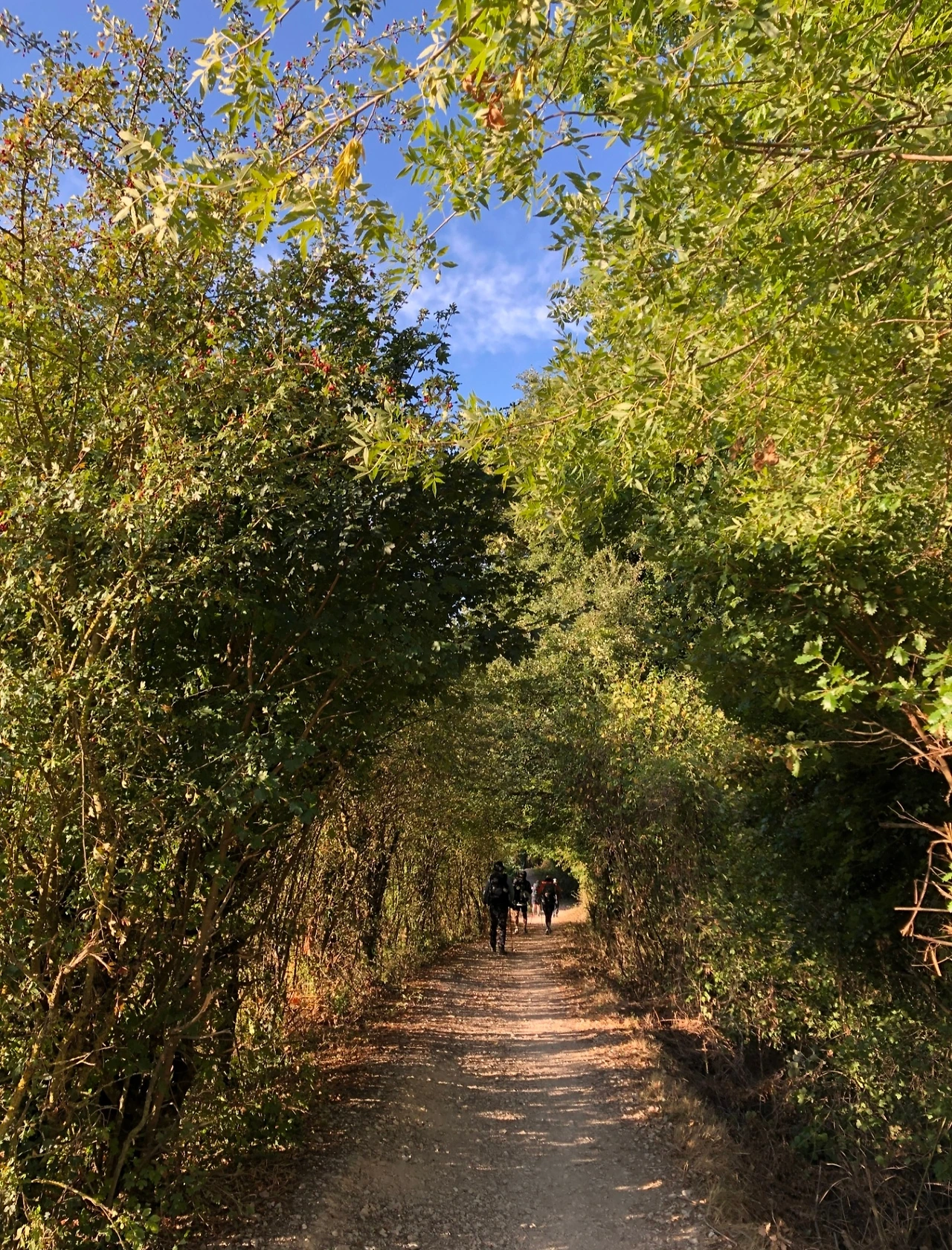 오르막길과 내리막길이 이어졌다. 구불구불한 숲길, 잘 다져진 아스팔트길, 또다시 촘촘한 나무로 이루어진 터널 길을 따라 두 시간을 걸으니 bar가 보였다. 그곳에서 휴식을 취하는 순례자들을 그대로 지나치고, 계속 걸어 나갔다. 이제 약 10km, 두 시간만 더 걸으면 팜플로냐에 도착할 수 있었다. 10시가 넘으니 태양이 뜨겁게 느껴졌고, 지열이 약간 올라왔다. 점점 배낭의 무게가 버겁게 느껴졌다. 발의 통증이 스멀스멀 올라왔다. 나는 목적지를 정복하기 위해 행군하는, 상명하복 하는 군인처럼 고통을 애써 외면하며 페이스대로 발걸음을 내디뎠다.