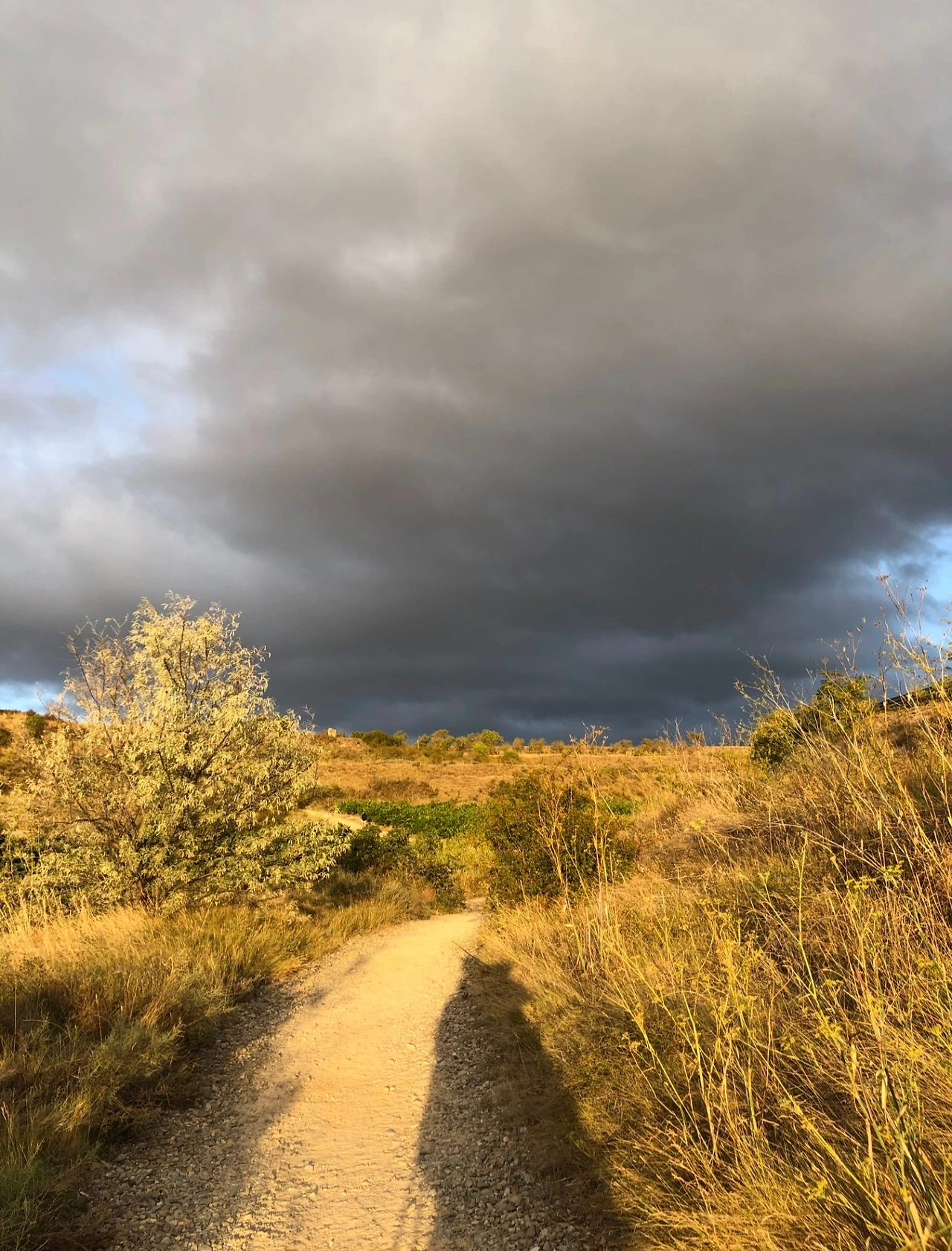 08시 15분. 적 붉은빛으로 지구의 곳곳을 감싸는 태양이 언덕 너머 구름 사이로 모습을 드러냈다. 나의 뒤에는 태양이 완연한 모습으로 떠오르고 있었고, 나의 정면에는 지붕처럼 아주 낮게 깔린 먹구름이 드리우고 있었다. 순간 두려움을 느꼈다. 그곳으로 가면 분명히 비를 맞게 될 운명이었다. 돌아갈 수 있는 길은 없었다. 나는 체념하고 먹구름 속으로 발걸음을 내디뎠다. 몇 걸음 가지 않아 굵은 빗방울 몇 개가 떨어지기 시작했다. 나는 우비를 뒤집어쓸까 고민했다. 이 정도라면 굳이 우비를 쓸 필요는 없었지만, 내가 가는 방향의 하늘이 심상치 않게 여겨졌다. 나는 착잡한 마음으로 우비를 뒤집어썼다. 나의 뒤편에선 먹구름과 관계없이 상대적으로 맑은 하늘에 태양이 떠오르고 있었다. 포도밭, 차도, 시골길을 연이어 걸었다. 비는 거슬리지 않을 정도로 뜨문뜨문 계속 떨어졌다. 제발 내가 숙소에 도착할 때까지 이랬으면 좋겠다 싶었다.