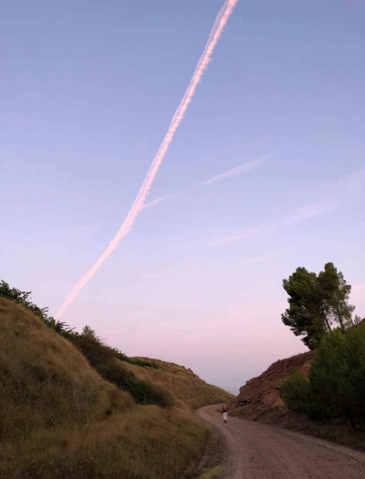 산토 도밍고까지는 약 21km, 4시간이면 도착할 거리였다. 늦장을 부린 탓에 예정보다 늦은 07시 20분이 돼서야 숙소에서 나오긴 했지만, 늦어도 12시 안에는 충분히 도착할 수 있었다. 어둠은 모두 가셨고, 은은한 분홍빛과 청명한 청색이 하늘 가득 매웠다. 마을을 밝히는 전구들은 아직 제 역할을 해내고 있었다. 10분쯤 걸으니 마을을 벗어났고, 20도쯤 기울어진 완만한 산길, 산책로가 나왔다. 아스팔트로 포장된 도로는 아니었지만, 잘 다져진 길이었다. 평소보다 늦은 시간이어서인지 평소보다 많은 순례자가 나와 길을 걷고 있었다. 평생 절대 스치지도 않았을 사람들과 함께 이 길을 걷고 있다는 사실이 흥미롭고, 묘하게 좋았다. 하지만 나와 근접한 곳에서 누군가가 걷고 있는 것은 늘 불편했다. 애매하게 나와 비슷한 속도로 걷는 사람을 만나면 더욱 불편했다. 그냥 왠지 모르게 신경이 쓰이고, 불편했다. 내 발걸음이 빠른 편이긴 했지만, 그 불편함에서 벗어나기 위해 빨래 걷는 경우도 자주 있었다.