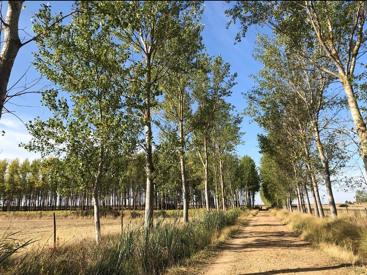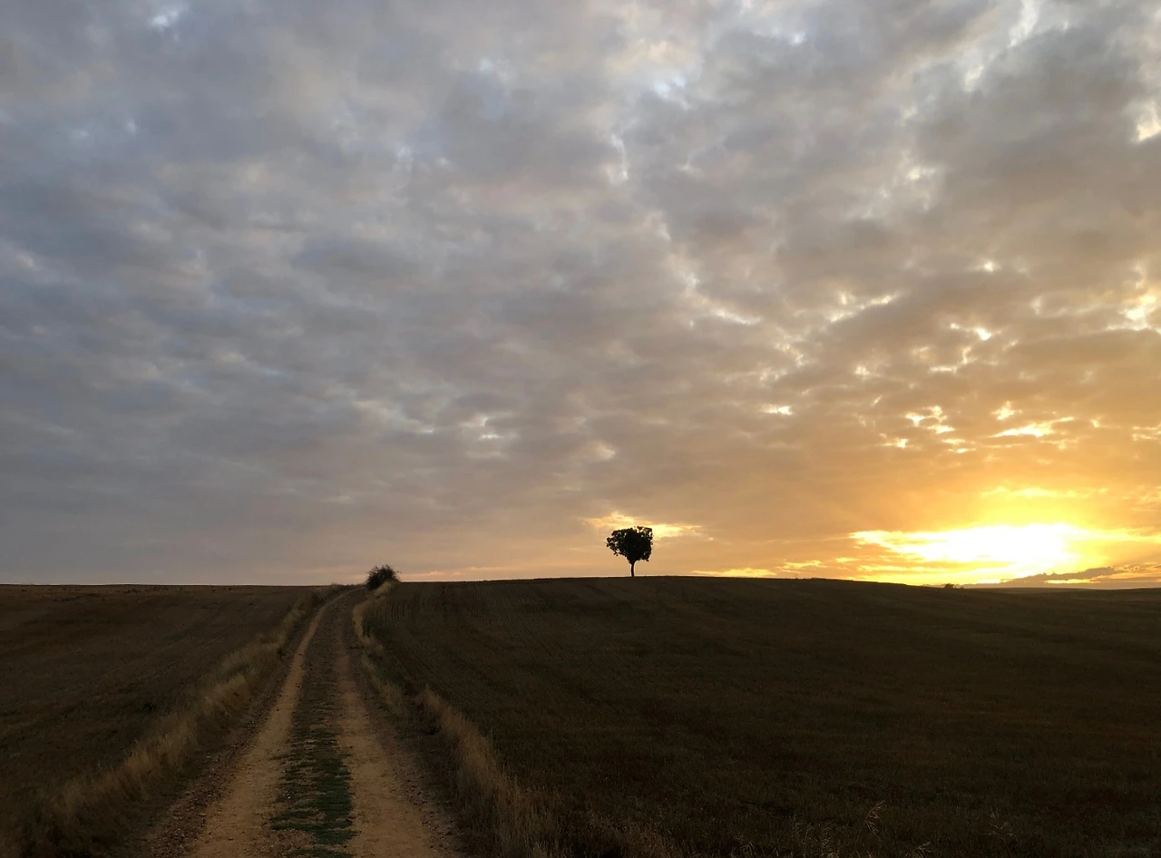 역시나 이날의 일출도 아름다웠다. 여명과 일출이 연이은 한 시간 정도 아주 멋진 길을 걸었다. 감사했다. 그 후의 길은 꽤 오랫동안 완전 평지, 연이은 허허벌판이었다. 해가 50도 정도 기울었을 때 3KM 정도를 날파리 무리가 나에게 빌붙어 같이 걸었다. 아주 짜증이 났다. 그놈의 날벌레. 파리. 정말 짜증났다. 그리고 발이 또 다시 본격적으로 아파왔고, 체력적으로도 힘들었다. 완전한 평야 위를 걷는 일은 지독했다. 지루했다. 특히나 오늘 날씨는 유독 더웠기 때문에 힘겨웠다.