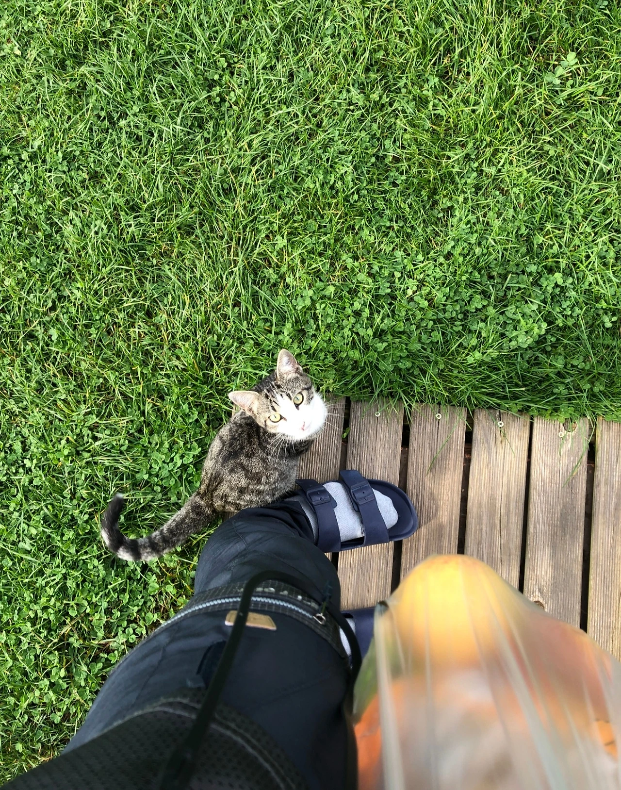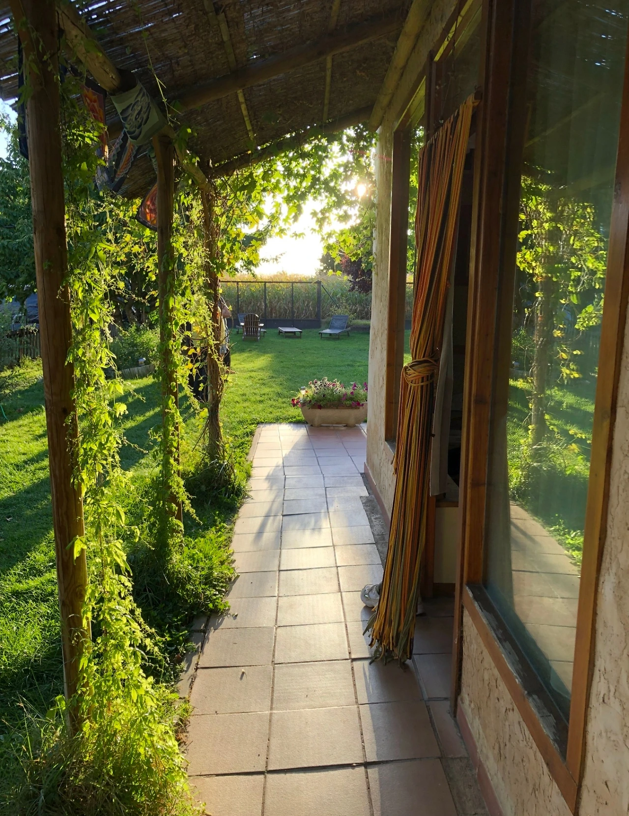 굉장히 친환경적인 숙소였다. 곳곳이 나무 구조물로 되어있었고, 요가원에서나 볼법한 소품들이 곳곳에 가득했다. 사실 내가 이곳에 온 가장 큰 이유는 요가를 진행하기 때문이었다. 지난번에는 실패했지만, 이번에는 체크인을 하며 오늘 요가를 하는지 물었는데 한다는 답을 받아서 무척 기뻤다. 나는 체크인을 마치고, 개인 정비를 한 후, 침대에 누워서 휴식을 취했다. 점심은 숙소에 오기 전에 마트에 들러서 산 빵과 과일로 해결했다. 참고로 이곳은 여태 내가 순례길에서 머문 숙소 중 가장 마음에 들고, 낭만적인 곳이라고 생각한다. 강아지와 고양이도 많고, 그들이 뛰어놀기 충분한 잔디 마당도 있고, 무엇보다 채식을 하고, 요가를 하기 때문이다.