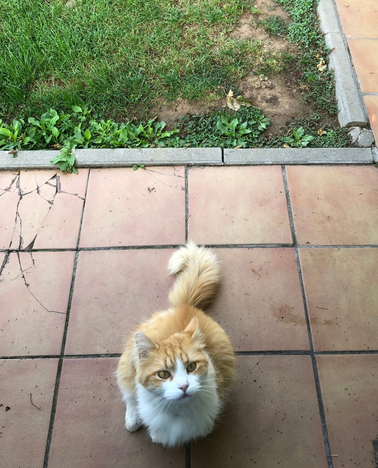 2시간 만에 목적지에 도착했고, 숙소로 곧장 갔다. 그런데 지도상의 위치는 맞는데 입구를 찾지 못해서 한동안 헤매다가 건물 한편에 있는 철문 너머 고양이가 있는 걸 보고 그에게 여기가 혹시 알베르게가 맞느냐고 물어봤다. 고양이는 아무런 반응도 하지 않고 내 주위를 서성이기만 했다. 그러다 갑자기 건물에서 사람이 나왔고, 그가 나에게 다가와 순례자가 맞느냐고 묻고는 문을 열어 환영해 주었다. 그는 나를 데리고 꽤 큰 잔디 마당을 지나 숙소 야외 테이블과 의자가 마련된 곳으로 안내했다. 그는 나를 그곳에 앉히고 아직 청소가 끝나지 않았으니 여기에서 기다리면 된다는 말과 함께 같이 앉았다. 얼마 지나지 않아 숙소 안에서 다른 순례자 한 명이 나에게 다가와 레몬차를 마시지 않겠냐고 친절하게 물었고, 나는 얼떨결에 그러겠다고 대답을 했다. 그는 금방 나에게 꿀을 탄 레몬차 한잔을 건넸다. 그리고 그곳에 앉은 몇 명의 순례자들이 나에게 이런저런 질문을 건넸다. 처음엔 곤혹스러웠지만, 예상외로 수월하게 대화를 나누고 있는 내 모습에 놀랐다.