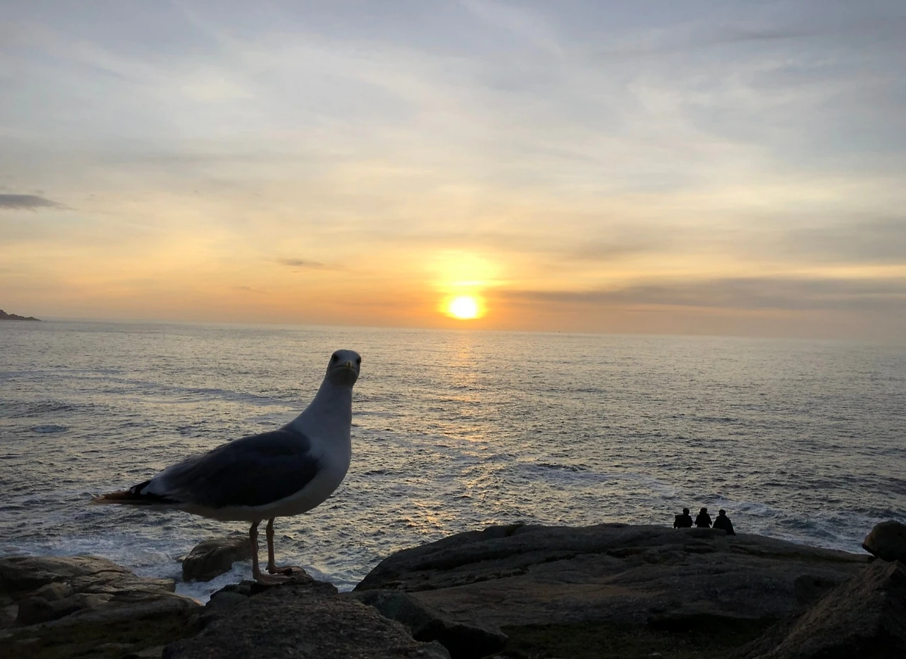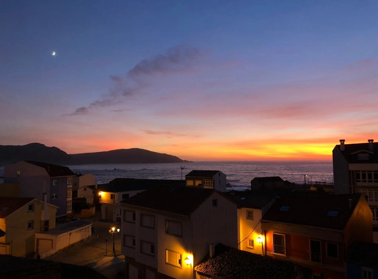 이후 묵시아와 피스테라에 들렀다. 묵시아는 스페인 서북부에 있는 해안마을이다. 예수의 열 두 제자 중 한 명인 야보고가 선교활동을 한 지역으로 알려져 있기도 하다, 또 2002년 유조선이 좌초되어 6만 톤이 넘는 기름이 유출돼 많은 피해를 입었고, 이후 그 사건을 잊지 않기 위해 해안 끝 자락에 벼락 모양으로 두 동강 난 기념비가 세워져 있기도 하다. 바로 그 옆에 순례길 0KM 비석이 세워져 있다. 묵시아는 뭐랄까. 목포에 있는 작은 항구 마을 같은 정겨운 느낌이 드는 곳이었다. 생각보다 오밀조밀 몰려있는 마을이 정감 있고, 밤이 되면 골목 사이사이 세워진 주황 전구가 감성을 덧칠했다. 숙소는 5층 정도 되는 건물이었는데 옥상에 올라 밤하늘을 보면 별들이 쏟아져 내렸고, 아침이면 휘황 한 일출이 멋들어지게 보이는 곳이었다. 숙소에서 조금만 걸어가면 곧바로 해수욕을 할 수 있는 아담한 해안가가 있는데 아무도 없는 그곳에서 혼자 발장구를 치는 때가 아직도 선하고 나의 기분을 산뜻하게 해 준다. 하지만 발걸음을 약간 틀어 항구 쪽으로 가보면 겁이 날 정도로 파도가 억세게 치기도 한다.