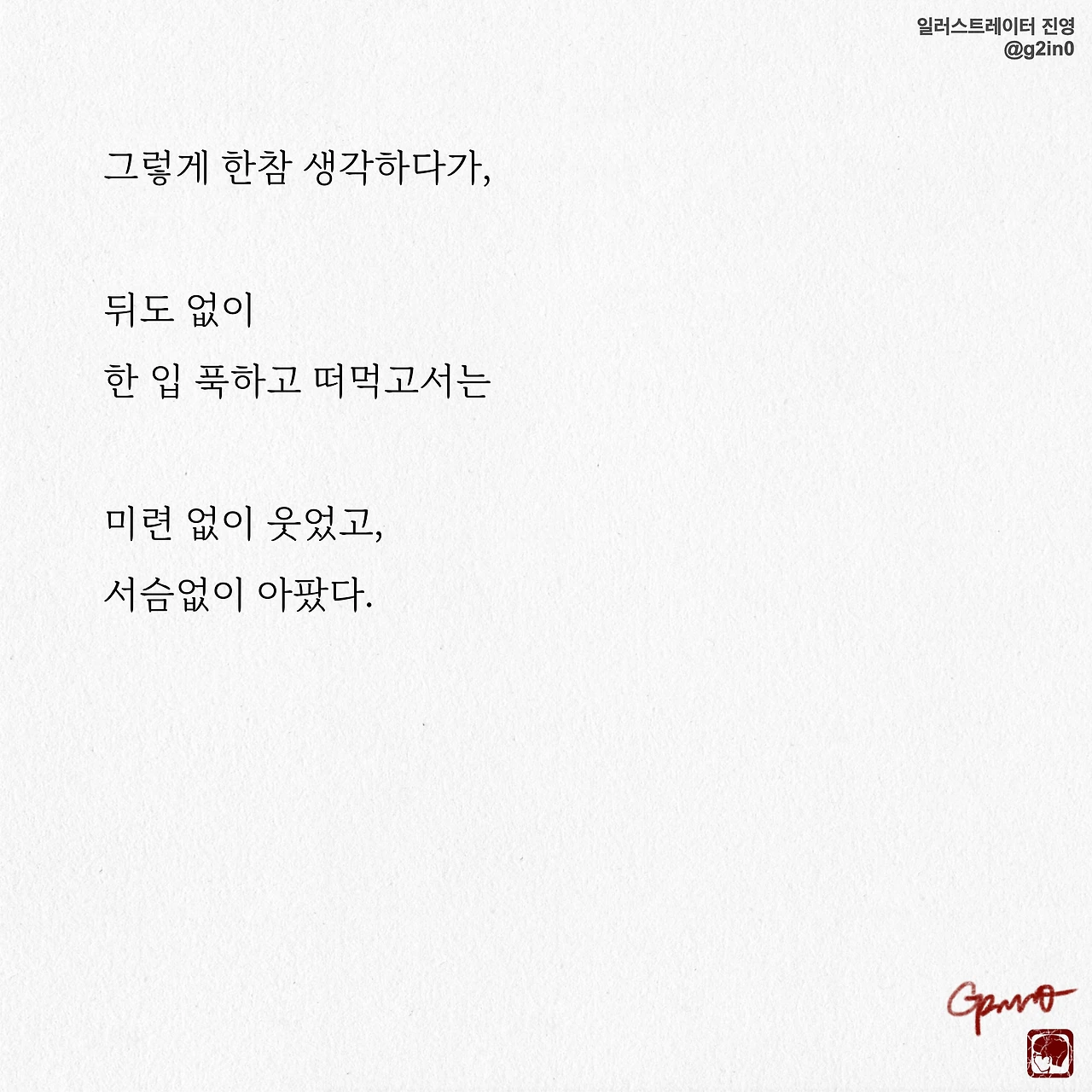 감성 글을 쓰고, 그림을 그립니다. 저의 작품이 누군가에게 그저 순간의 '기쁨', 혹은 '슬픔'이 되었다가 사라지기보다는 오랫동안 '좋음'으로 함께 했으면 좋겠습니다.
