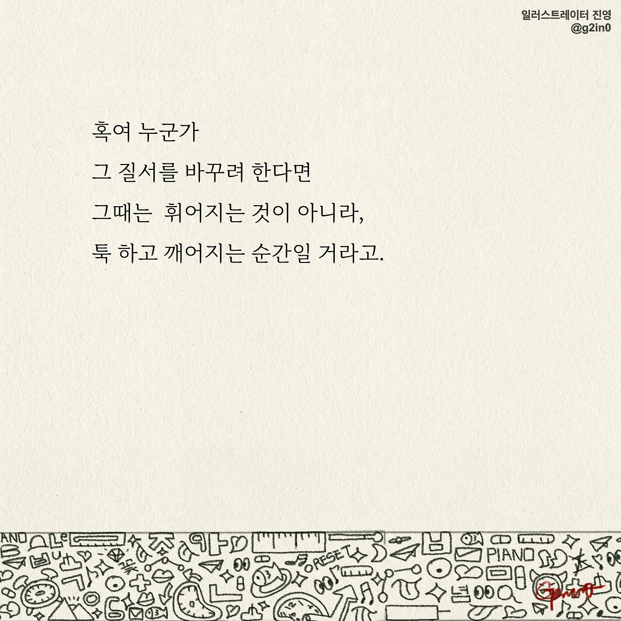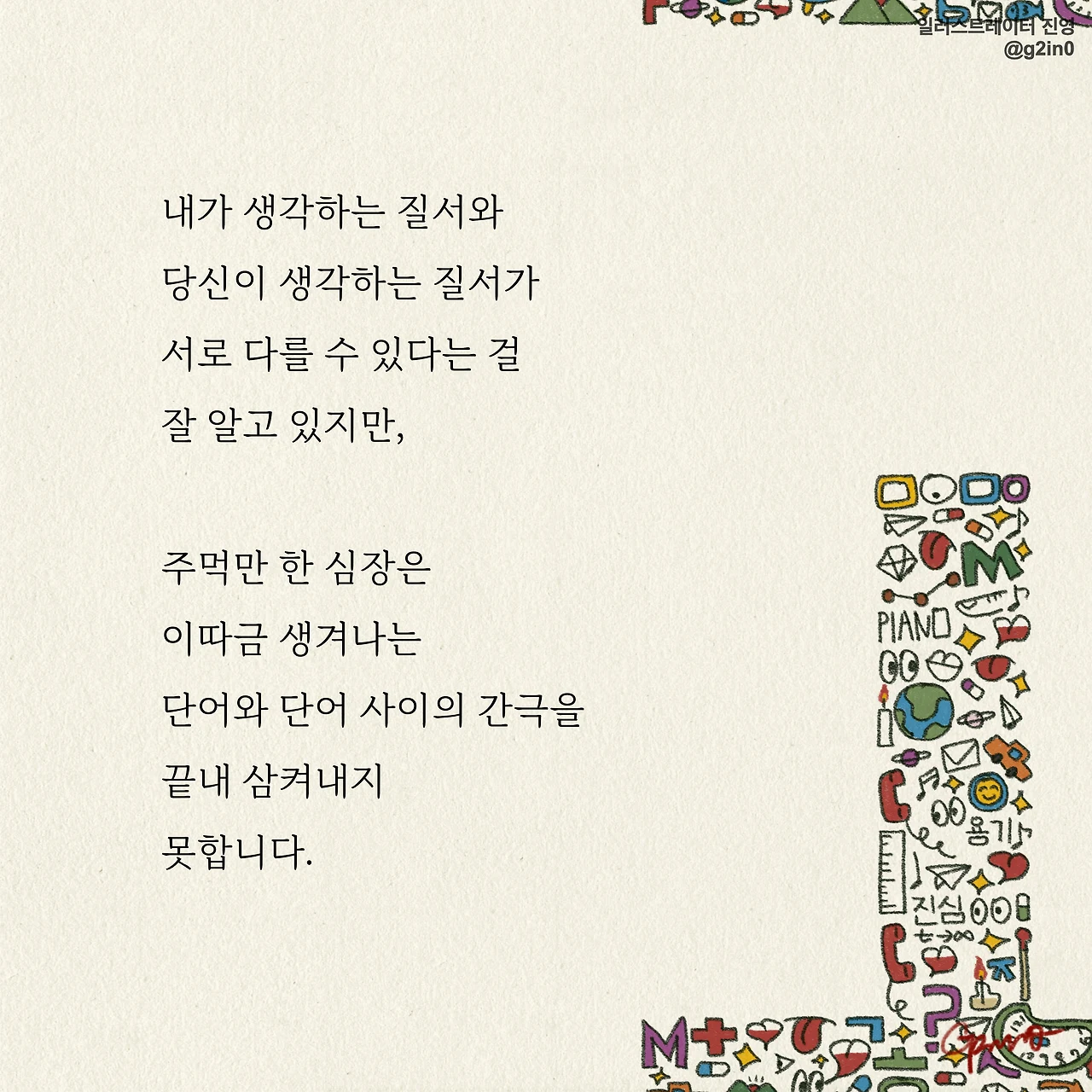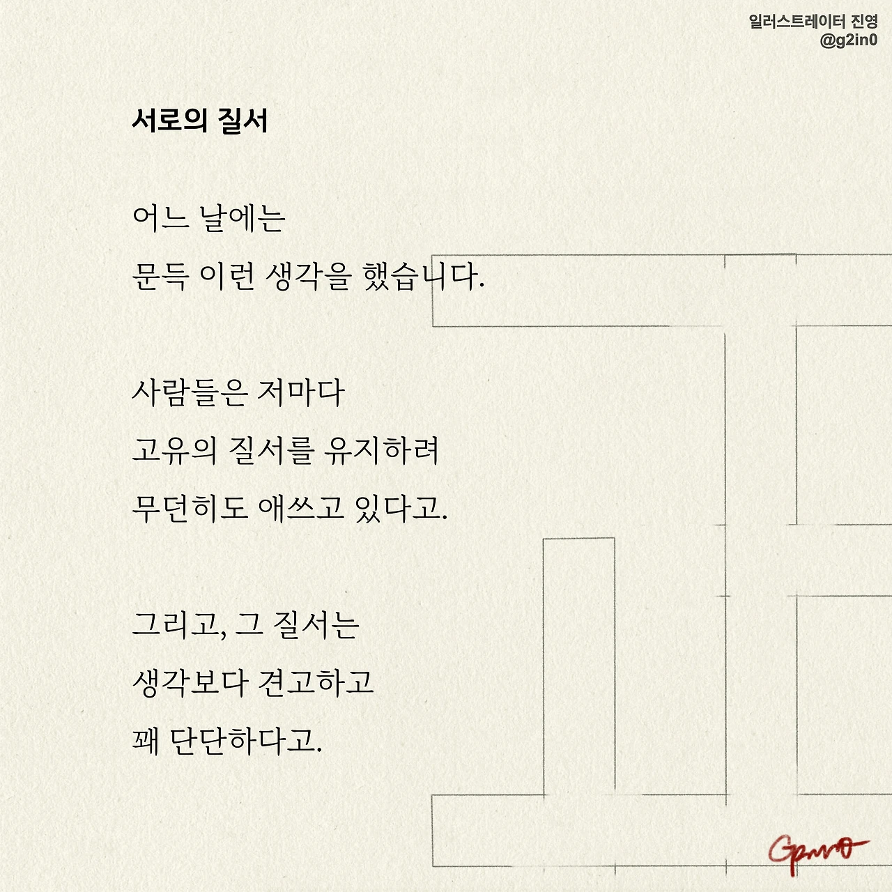 감성 글을 쓰고, 그림을 그립니다. 저의 작품이 누군가에게 그저 순간의 '기쁨', 혹은 '슬픔'이 되었다가 사라지기보다는 오랫동안 '좋음'으로 함께 했으면 좋겠습니다.