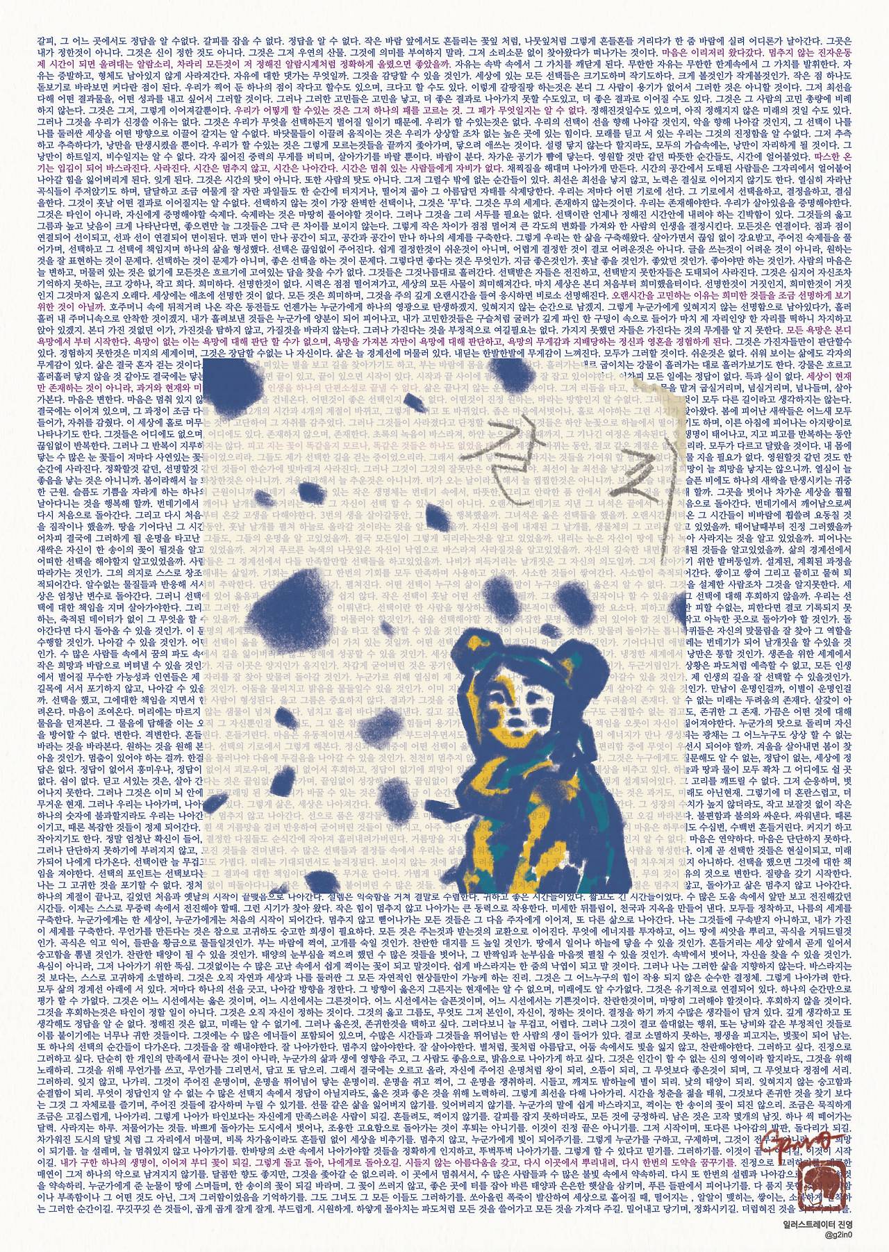 목표한 다섯 개의 공모전에서 당선된 이후, 나는 본격적으로 그림을 그리기 시작했다. 제대로 된 배움 없이 시작한 그림이지만, 자신감이 있었다. 아는 것이 없어 두려운 것도 없었다. 그림을 그리는 순간은 언제나 자유로웠다. 그런데 그림을 시작한 지 1년이 조금 지나면서 부터 나 자신이 얼마나 부족한지 깨닫기 시작했다.