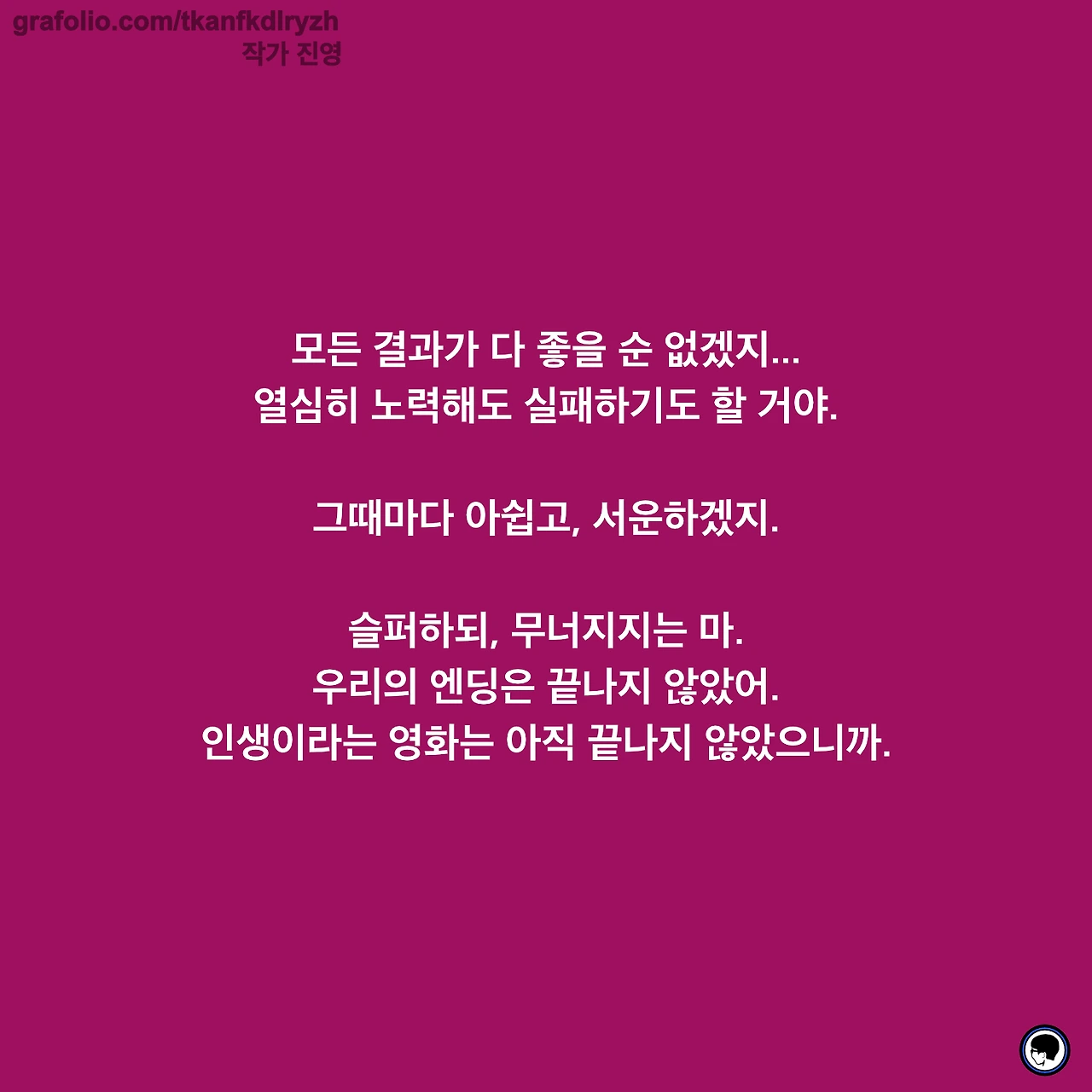 감성 글을 쓰고, 그림을 그립니다. 저의 작품이 누군가에게 그저 순간의 '기쁨', 혹은 '슬픔'이 되었다가 사라지기보다는 오랫동안 '좋음'으로 함께 했으면 좋겠습니다.