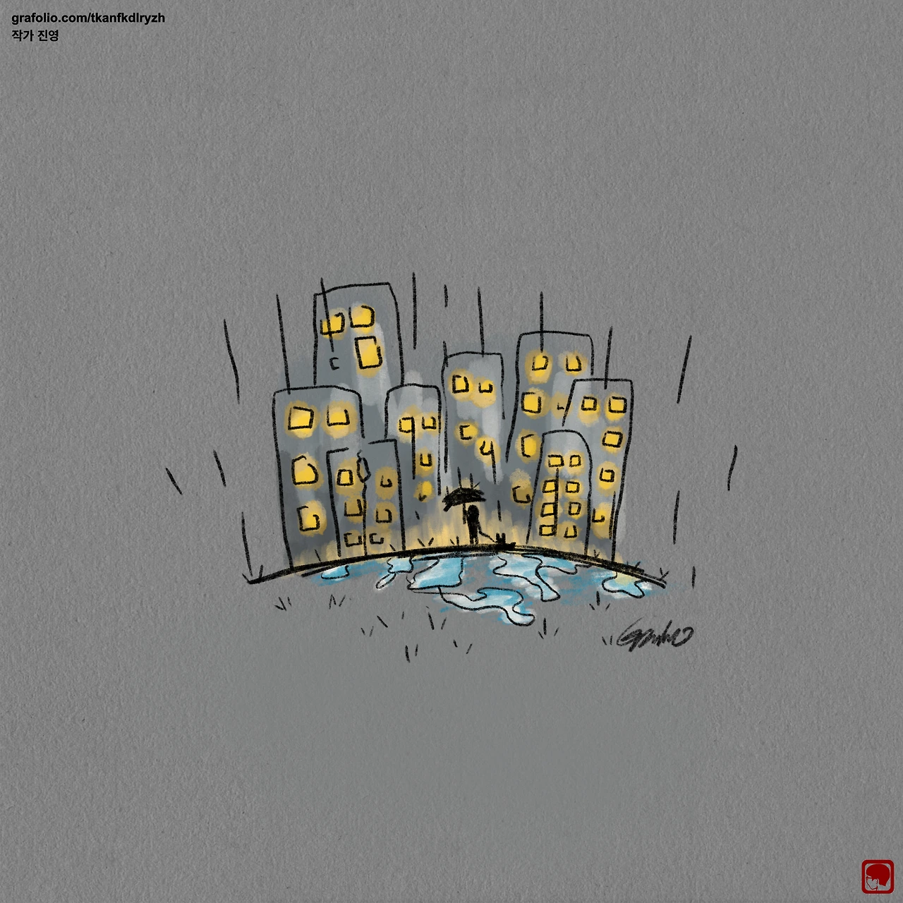더 받은 거스름 돈을 다시 돌려주고, 돌아오는 길에 비 내리는 하늘을 바라보았다.