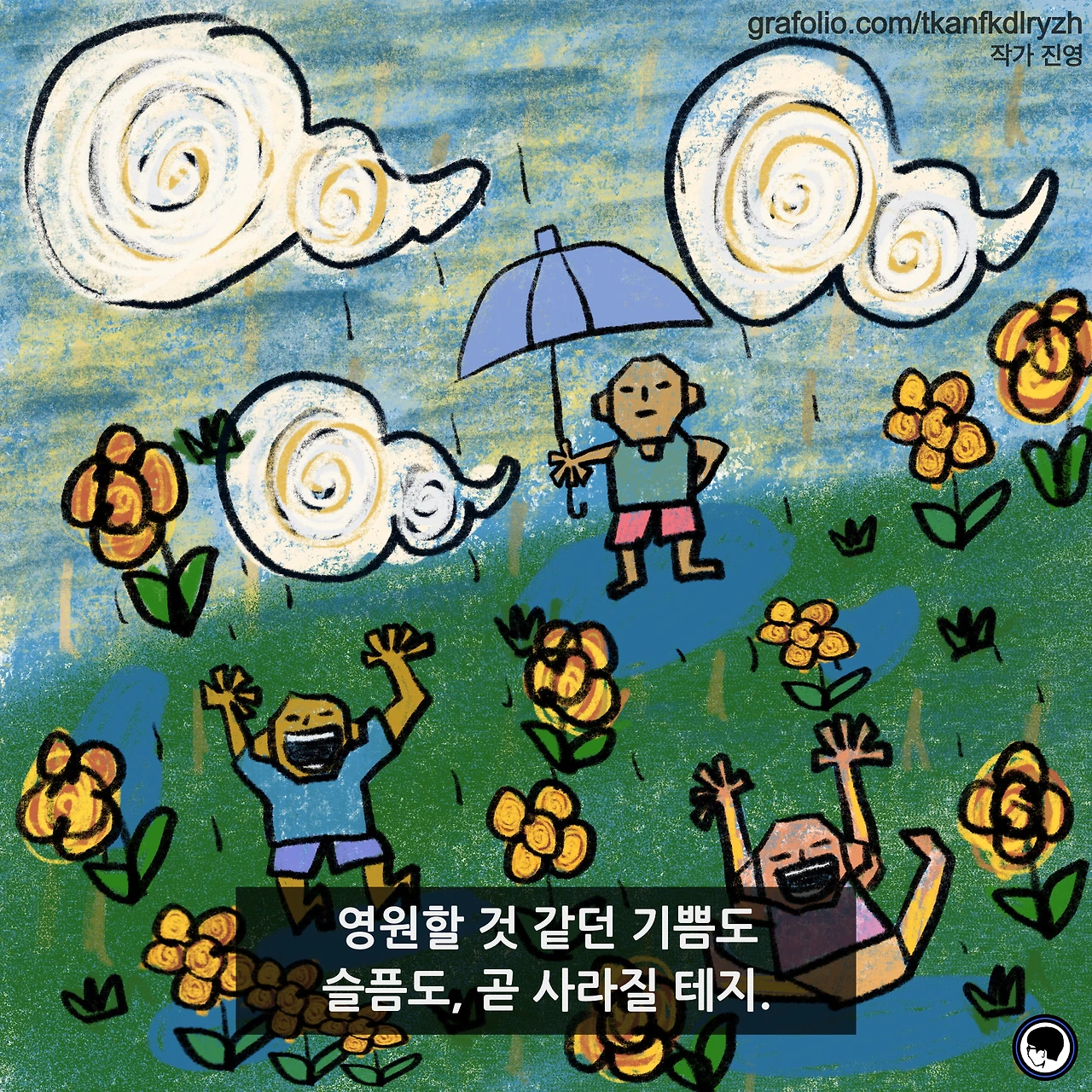 감성 글을 쓰고, 그림을 그립니다. 저의 작품이 누군가에게 그저 순간의 '기쁨', 혹은 '슬픔'이 되었다가 사라지기보다는 오랫동안 '좋음'으로 함께 했으면 좋겠습니다.