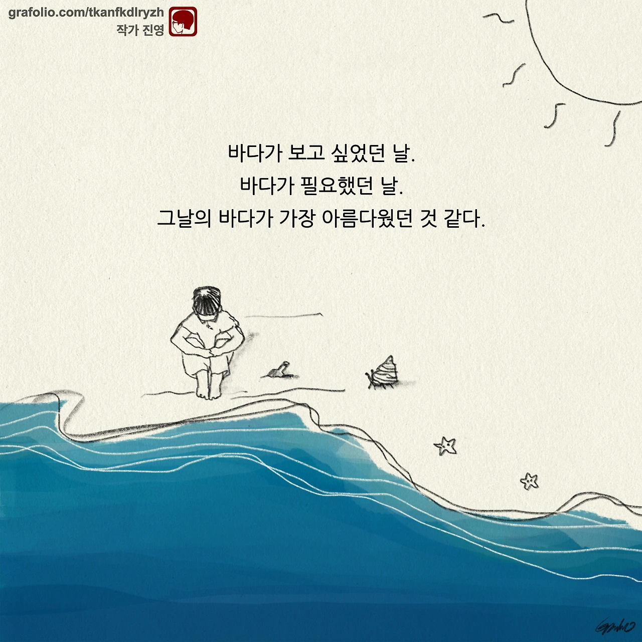 감성 글을 쓰고, 그림을 그립니다. 저의 작품이 누군가에게 그저 순간의 '기쁨', 혹은 '슬픔'이 되었다가 사라지기보다는 오랫동안 '좋음'으로 함께 했으면 좋겠습니다.