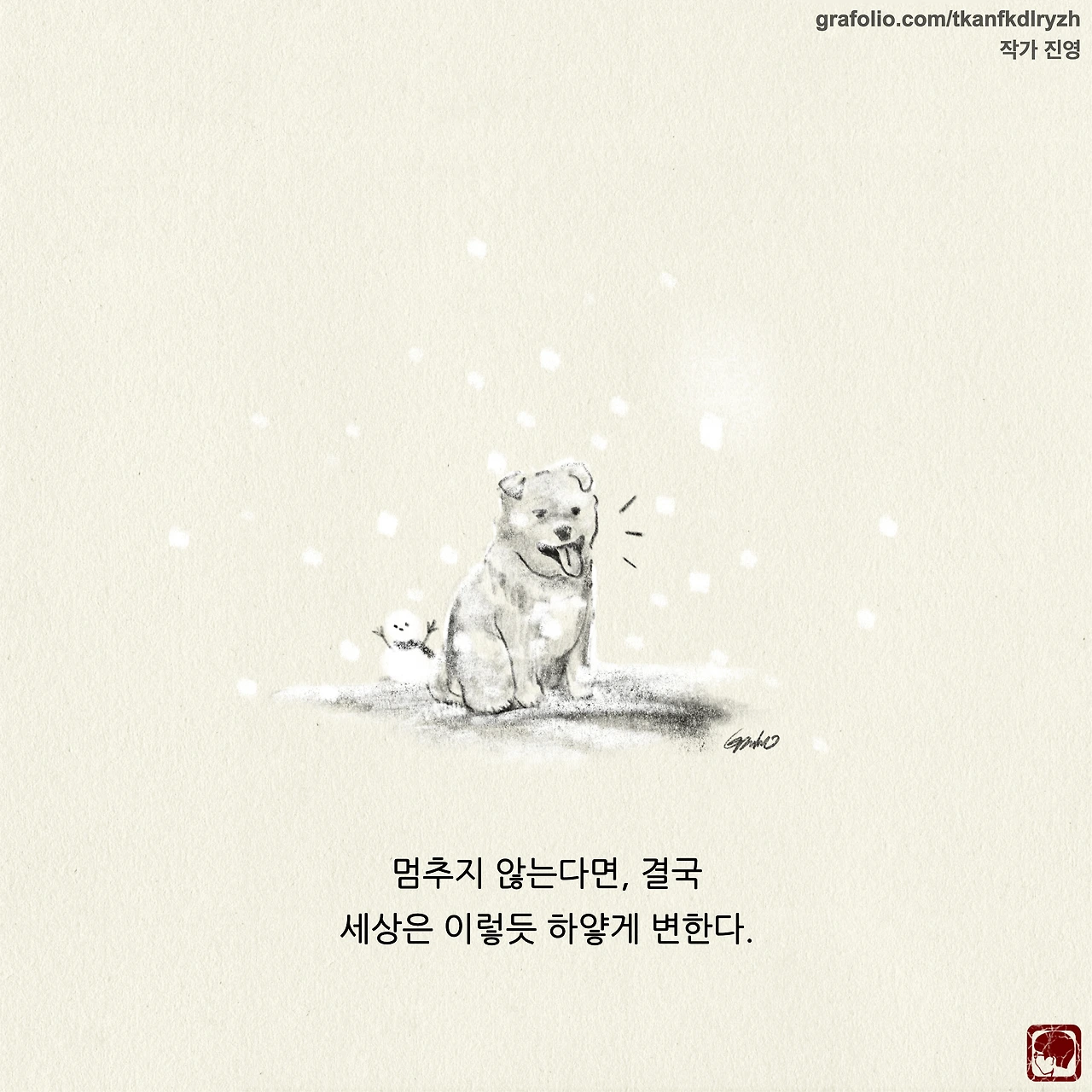 감성 글을 쓰고, 그림을 그립니다. 저의 작품이 누군가에게 그저 순간의 '기쁨', 혹은 '슬픔'이 되었다가 사라지기보다는 오랫동안 '좋음'으로 함께 했으면 좋겠습니다.