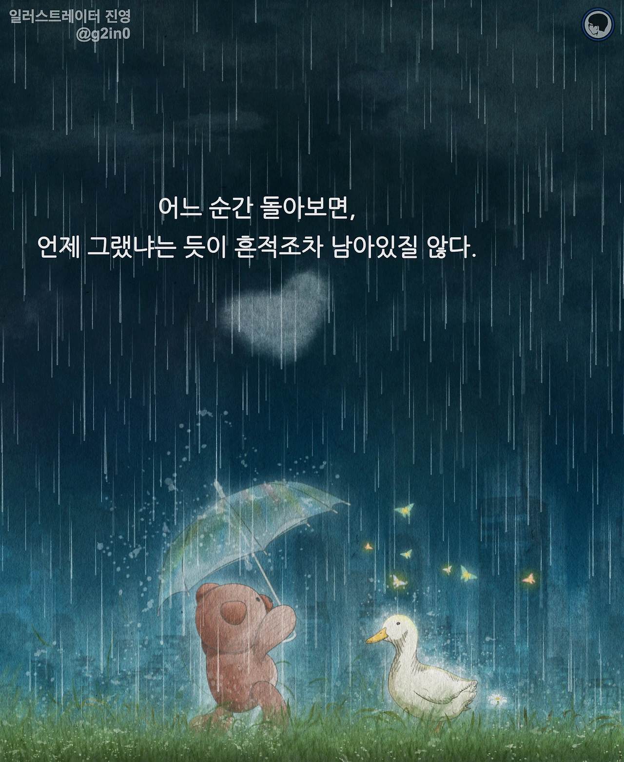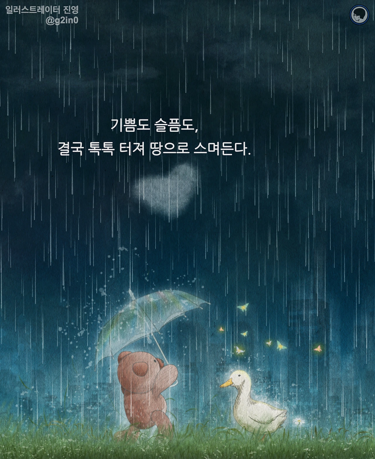 감성 글을 쓰고, 그림을 그립니다. 저의 작품이 누군가에게 그저 순간의 '기쁨', 혹은 '슬픔'이 되었다가 사라지기보다는 오랫동안 '좋음'으로 함께 했으면 좋겠습니다.