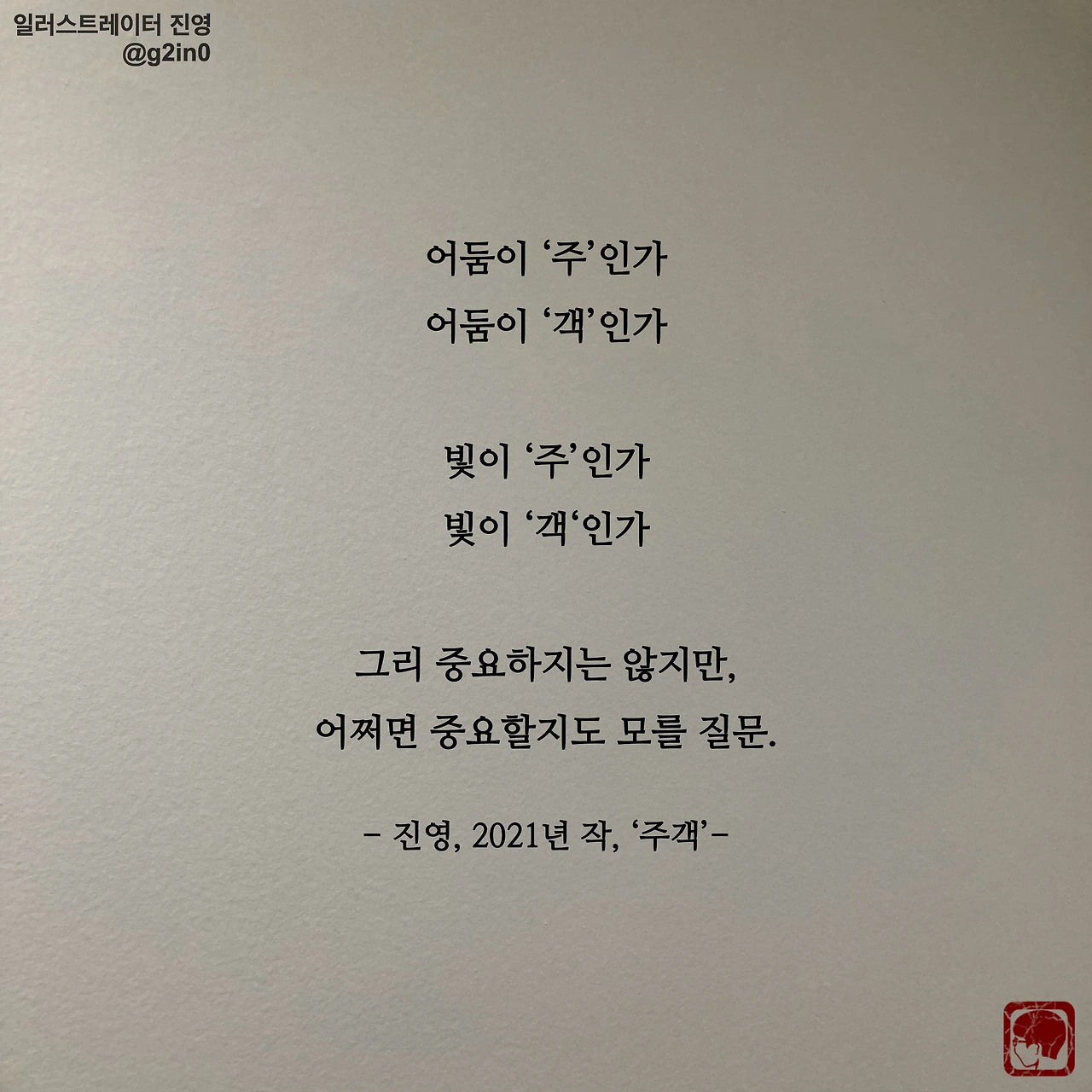 감성 글을 쓰고, 그림을 그립니다. 저의 작품이 누군가에게 그저 순간의 '기쁨', 혹은 '슬픔'이 되었다가 사라지기보다는 오랫동안 '좋음'으로 함께 했으면 좋겠습니다.