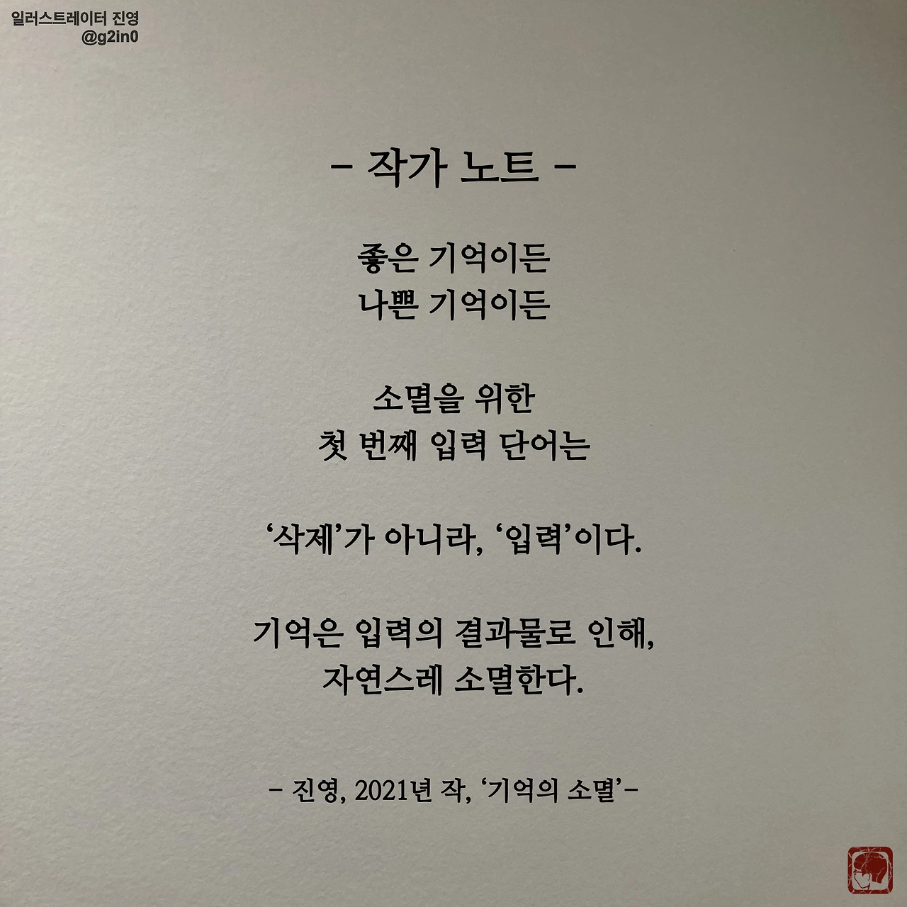 <기억의 소멸> (2021). Created by 진영