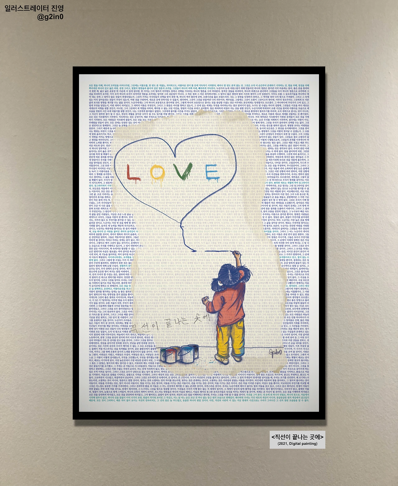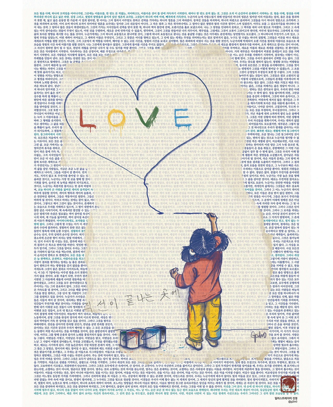 작품에서 빼곡하게 쓰여 있는 글은 질서를 의미합니다.