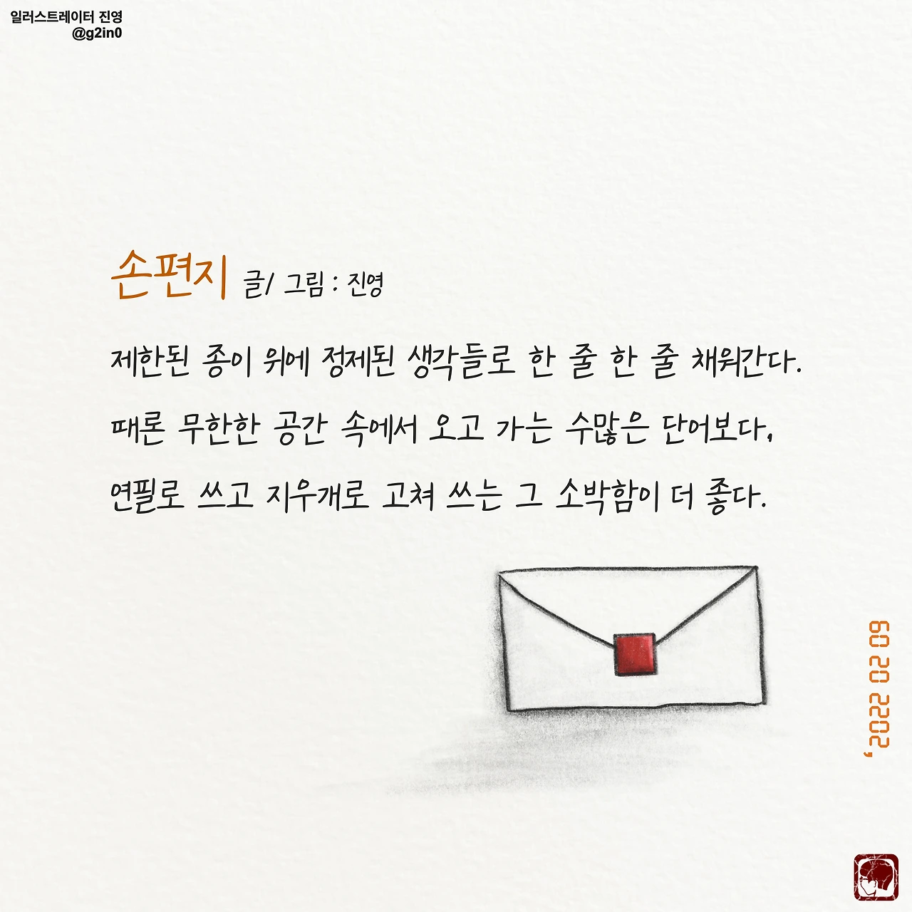 감성 글을 쓰고, 그림을 그립니다. 저의 작품이 누군가에게 그저 순간의 '기쁨', 혹은 '슬픔'이 되었다가 사라지기보다는 오랫동안 '좋음'으로 함께 했으면 좋겠습니다.