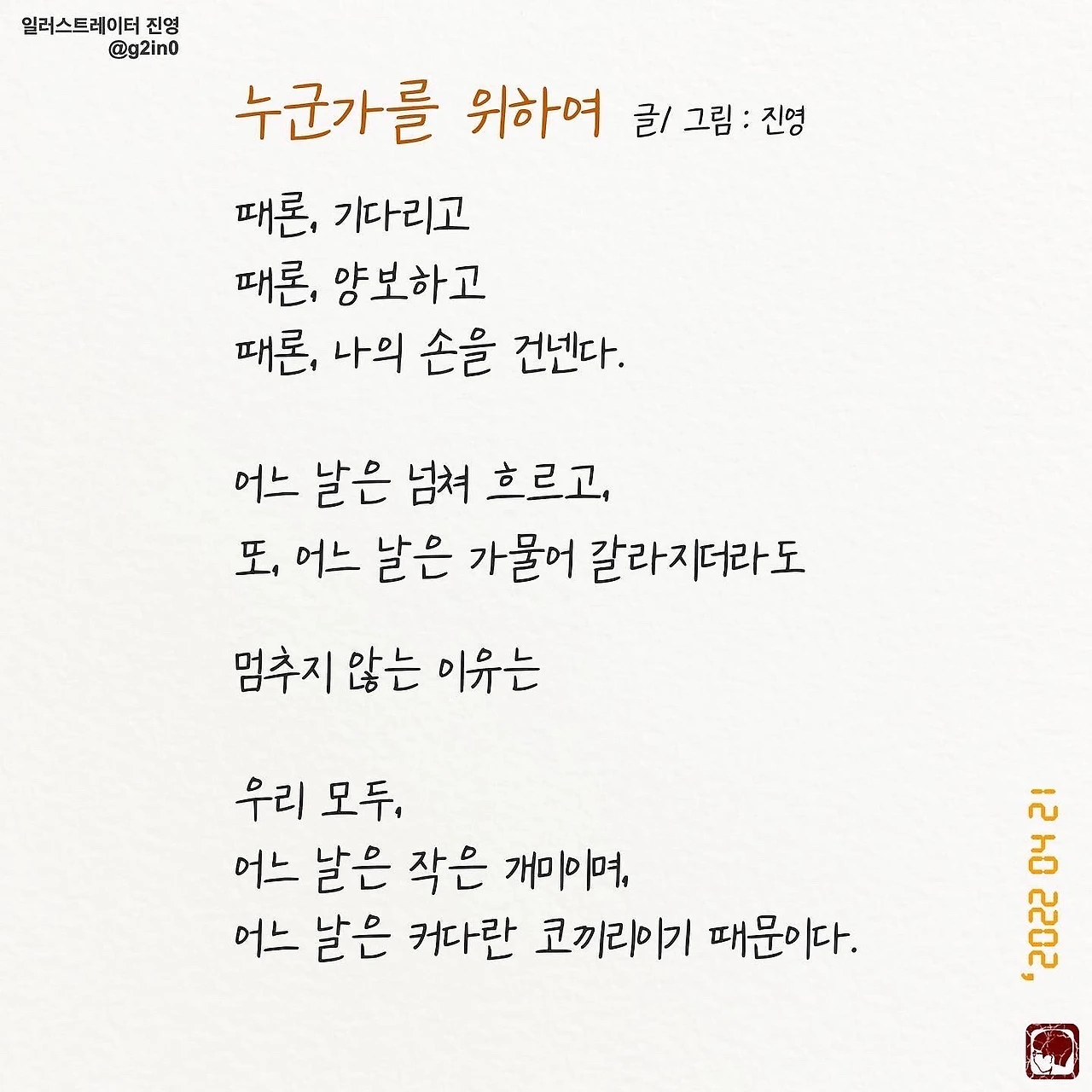 <누군가를 위하여>(2022).Created by 진영