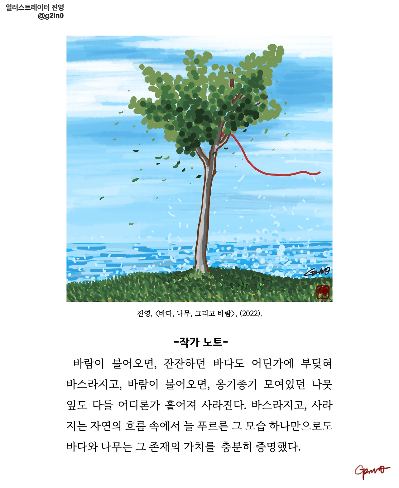바다, 나무 그리고 바람(2022).[그림/작품설명]