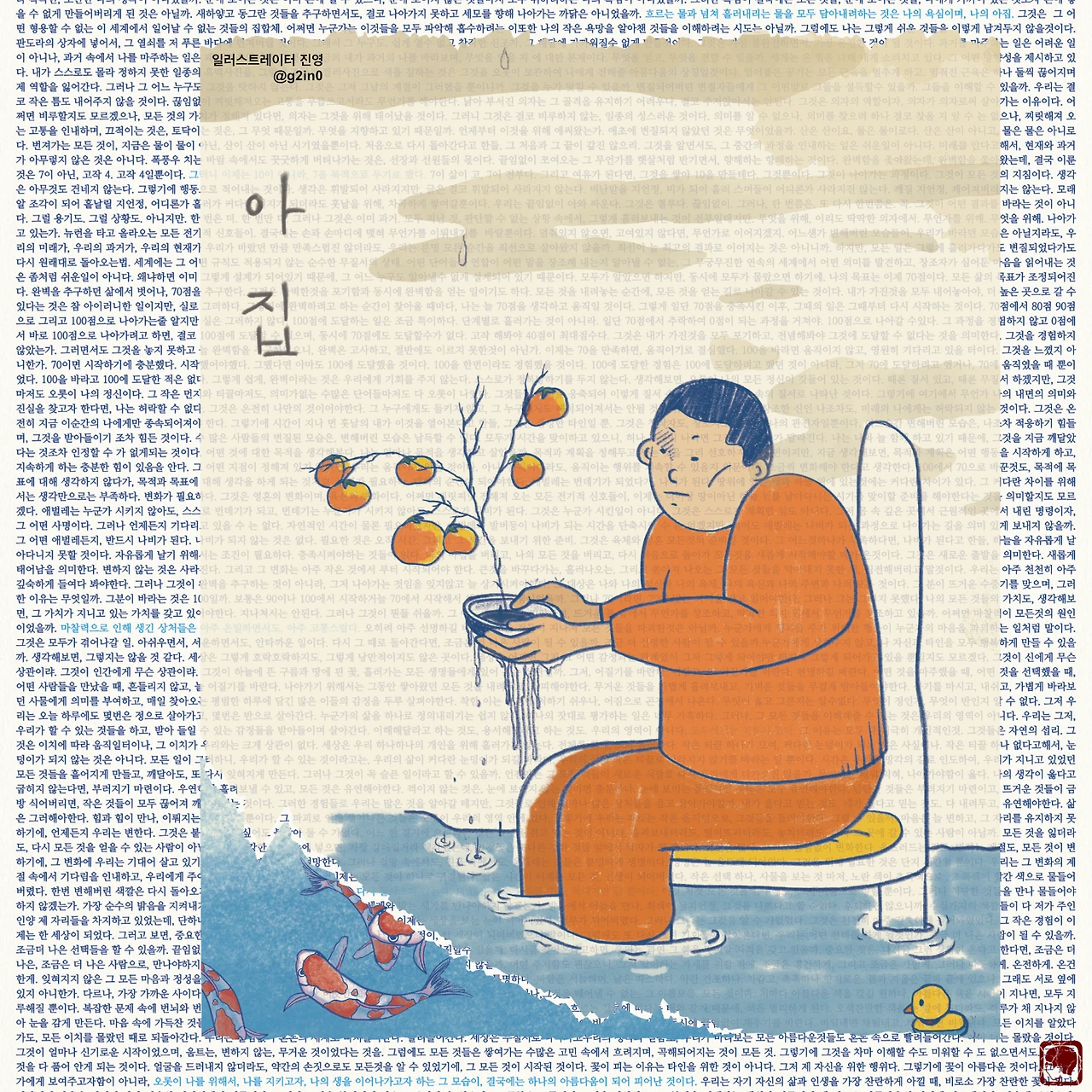 감성 글을 쓰고, 그림을 그립니다. 저의 작품이 누군가에게 그저 순간의 '기쁨', 혹은 '슬픔'이 되었다가 사라지기보다는 오랫동안 '좋음'으로 함께 했으면 좋겠습니다.