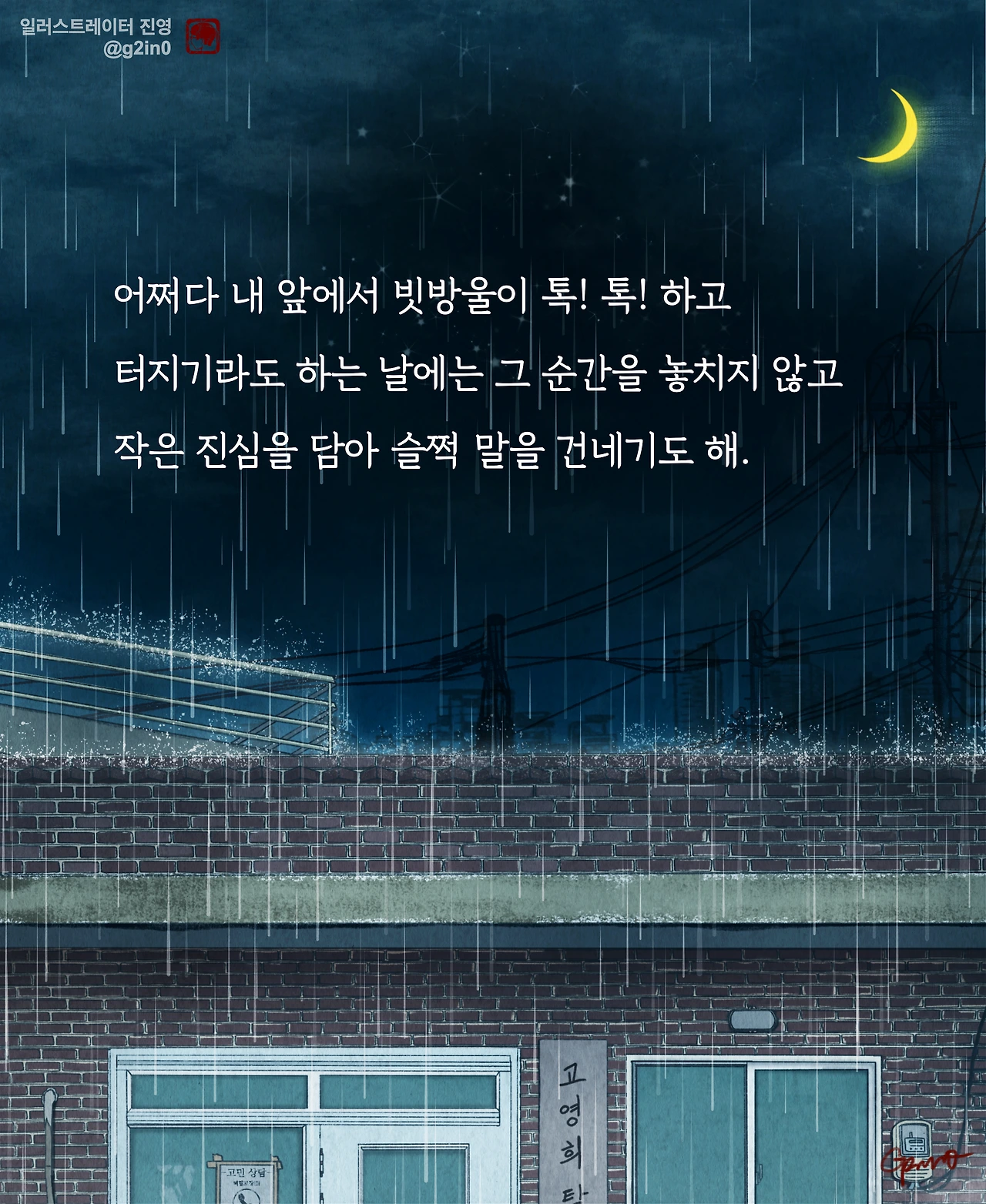 감성 글을 쓰고, 그림을 그립니다. 저의 작품이 누군가에게 그저 순간의 '기쁨', 혹은 '슬픔'이 되었다가 사라지기보다는 오랫동안 '좋음'으로 함께 했으면 좋겠습니다.