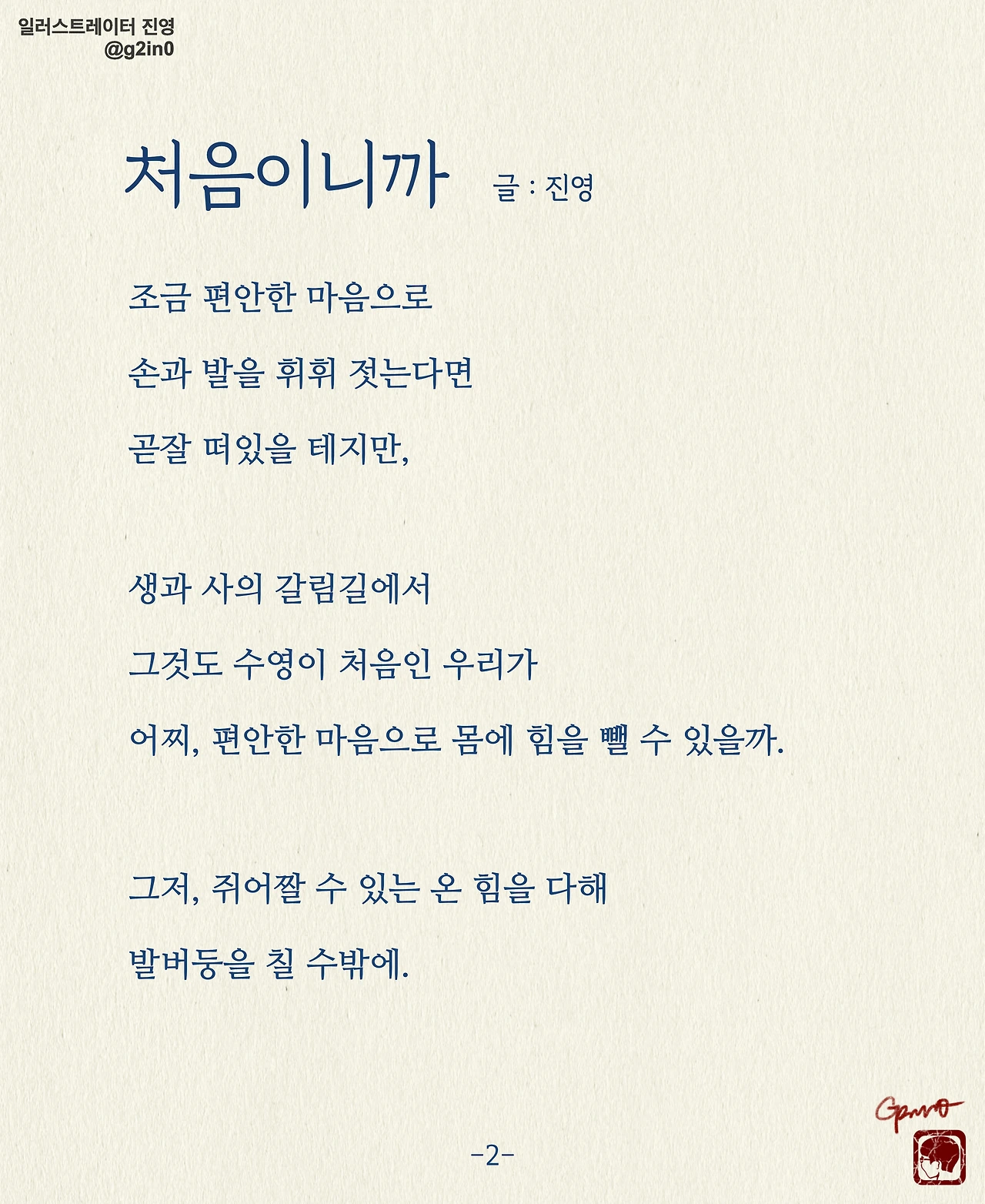 감성 글을 쓰고, 그림을 그립니다. 저의 작품이 누군가에게 그저 순간의 '기쁨', 혹은 '슬픔'이 되었다가 사라지기보다는 오랫동안 '좋음'으로 함께 했으면 좋겠습니다.