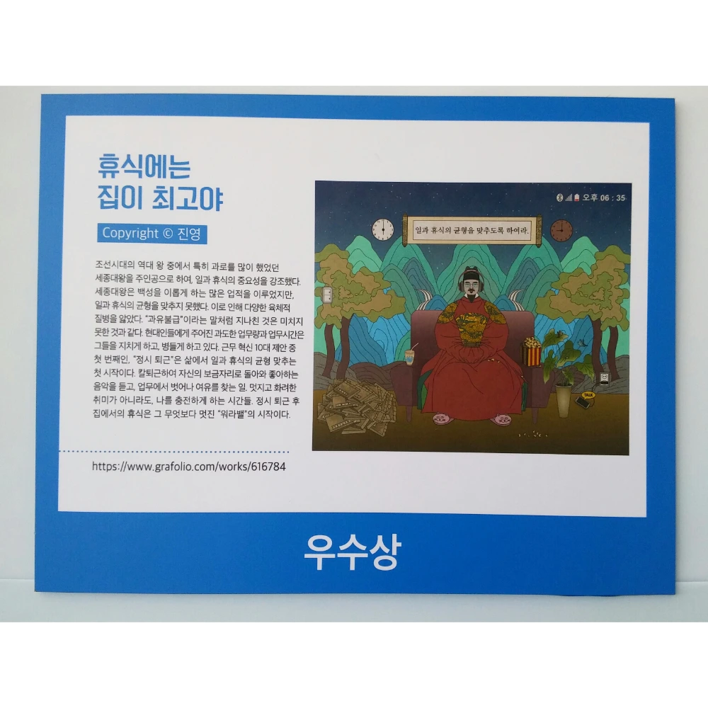 네이버 그라폴리오에 작품을 업로드하면서, 개인적으로는 좋은 경험을 참 많이 했다. 시상식에서 수상을 했고, 연재 공모전에서 당선되어 매주 목요일마다 일러스트를 연재하기도 했다.