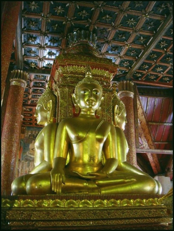 법당의 중앙에는 네 분의 부처님이 사방으로 나 있는 문 쪽을 향해 앉아 계시는데 구루손불(Kakusandha), 구나함모니불(Konagamana), 가섭불(Kassapa), 그리고 석가모니불(Gautama)이 그것이다.