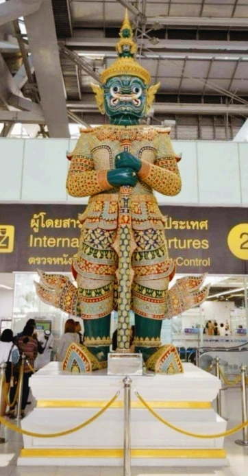 태국 정부는 왓 프라깨우를 지키는 가장 강력한 12명의 수호신을 모티브로 도깨비상들을 만들어 공항 안쪽에 배치했습니다.