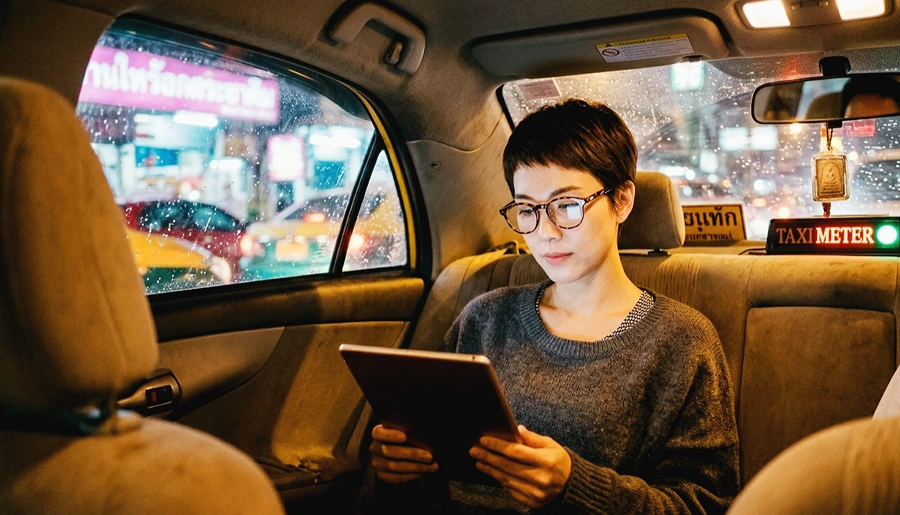 그 붉은 빛은 택시 안으로 무례하게 침범해