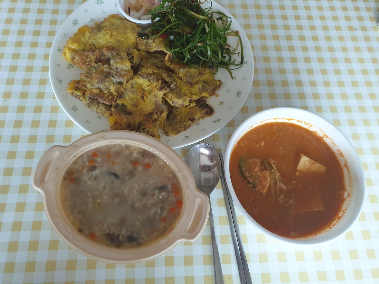 오후-소고기죽, 된장찌개, 육전, 파채 (먹은 기억이 안남. 나도 모르게 꿀꺽)