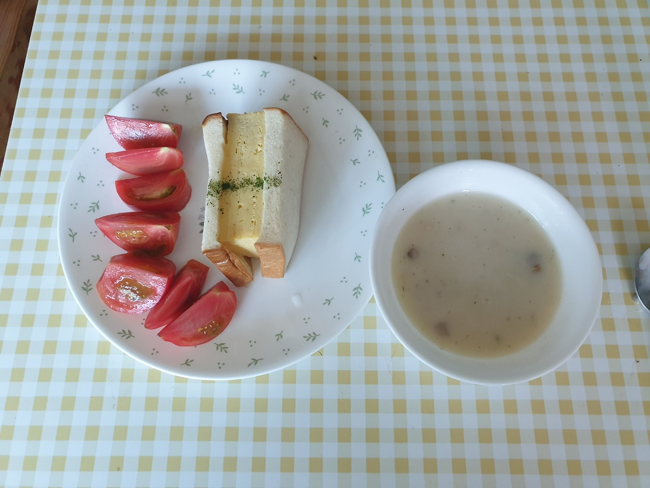 오전-스프, 타마고산도, 토마토