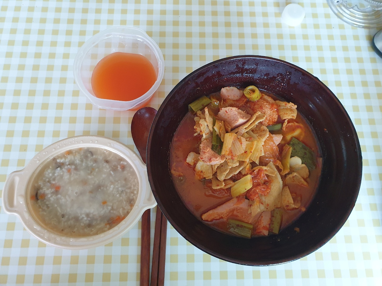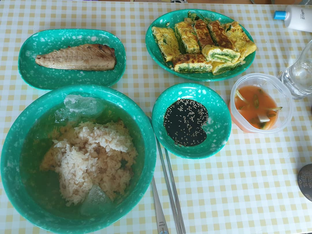 오전-소고기죽, 스팸 넣은 돼지고기김치찜, 열무김치 국물만(믿기 어려우나, 반도 못 먹음)