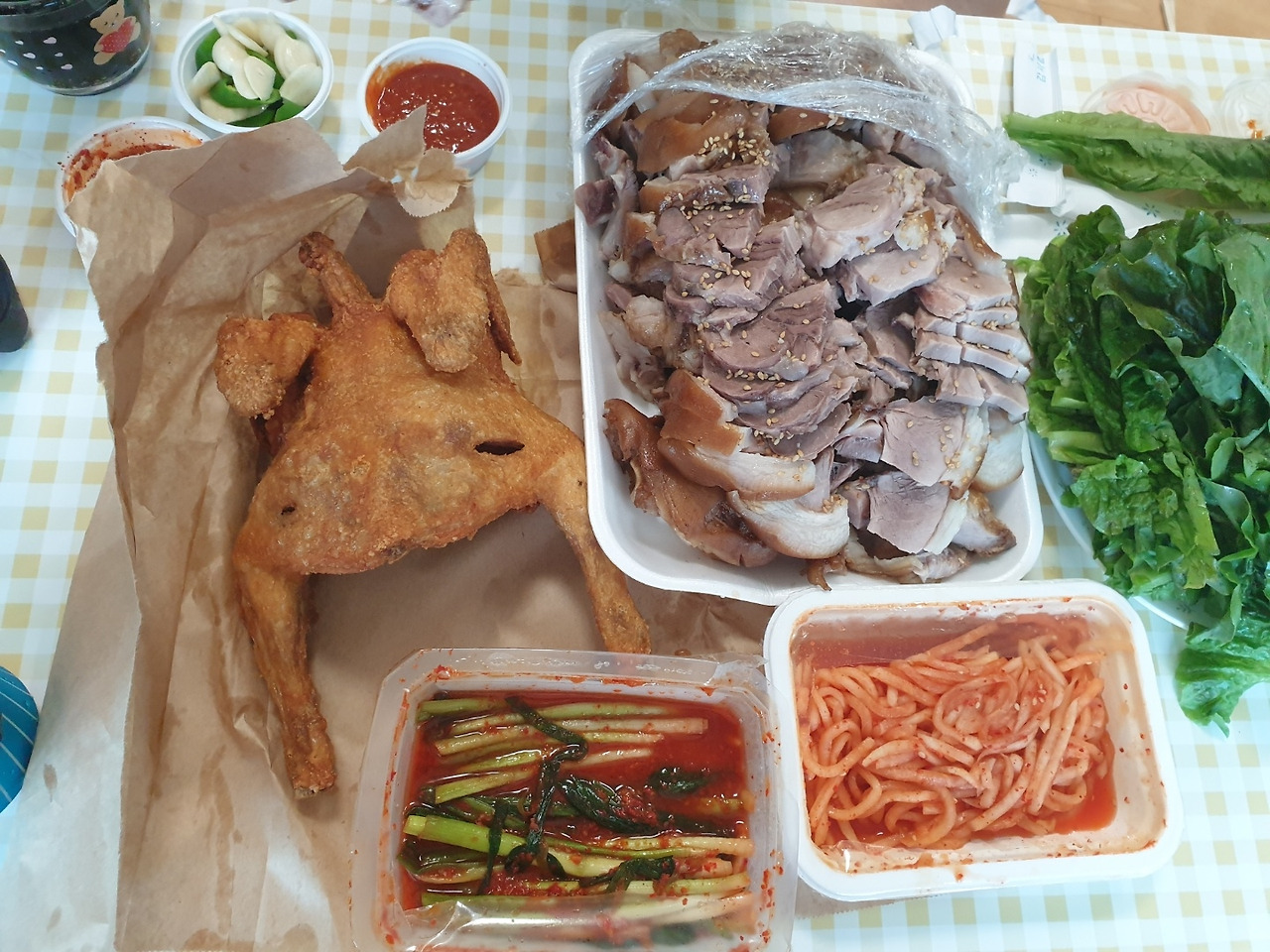 오후-족발, 치킨(하하, 실밥 풀렀으니... 정말로 다 먹은 거 아님. 혼자 먹은 거 아님. 남김)