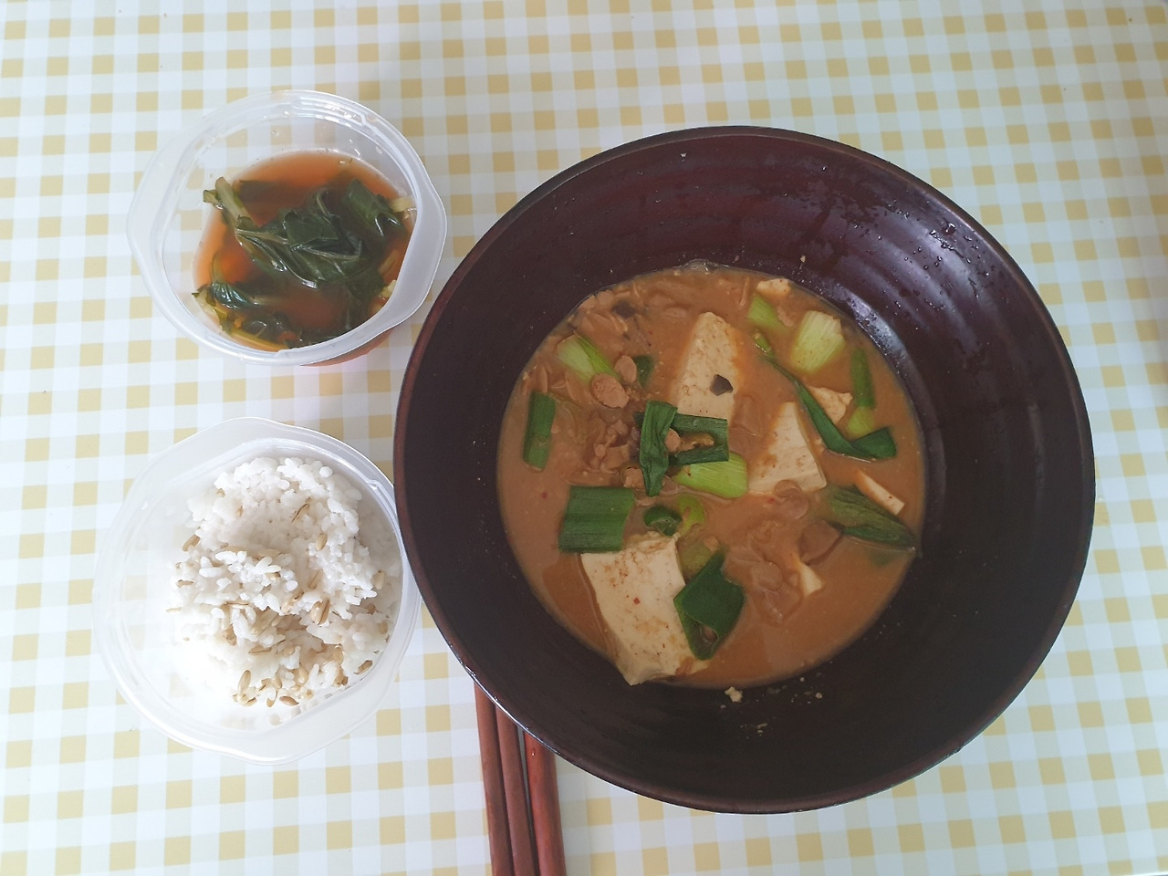 오전-귀리밥, 비건 청국장, 열무김치